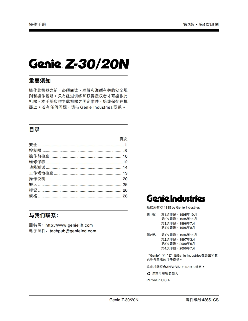GENIE吉尼-industries-PIIGROn-Gcnie.Z.30-操个-Second-Editiol曲臂吊高空作业平台操作说明书手册找手册网22小时前发布关注私信4.21MB30页023GENIE吉尼-industries-PIIGROn-Gcnie.Z.30-操个-Second-Editiol曲臂吊高空作业平台操作说明书手册此内容为付费资源,请付费后查看¥19¥21黄金会员免费钻石会员免费立即购买您当前未登录!建议登陆后购买,可保存购买订单付费资源 第1页 / 共30页 第2页 / 共30页 第3页 / 共30页 第4页 / 共30页 第5页 / 共30页 第6页 / 共30页 第7页 / 共30页 第8页 / 共30页 第9页 / 共30页 第10页 / 共30页 试读已结束,还剩20页,您可下载完整版后进行离线阅读 THE ENDGENIE 文本预览 Genie IndustriesPuGenie.Z-30/20N操作手册包括维修保养信息Second Edition,Fourth PrintingPart No.43651CS 查看更多 收起部分 喜欢就支持一下吧收藏