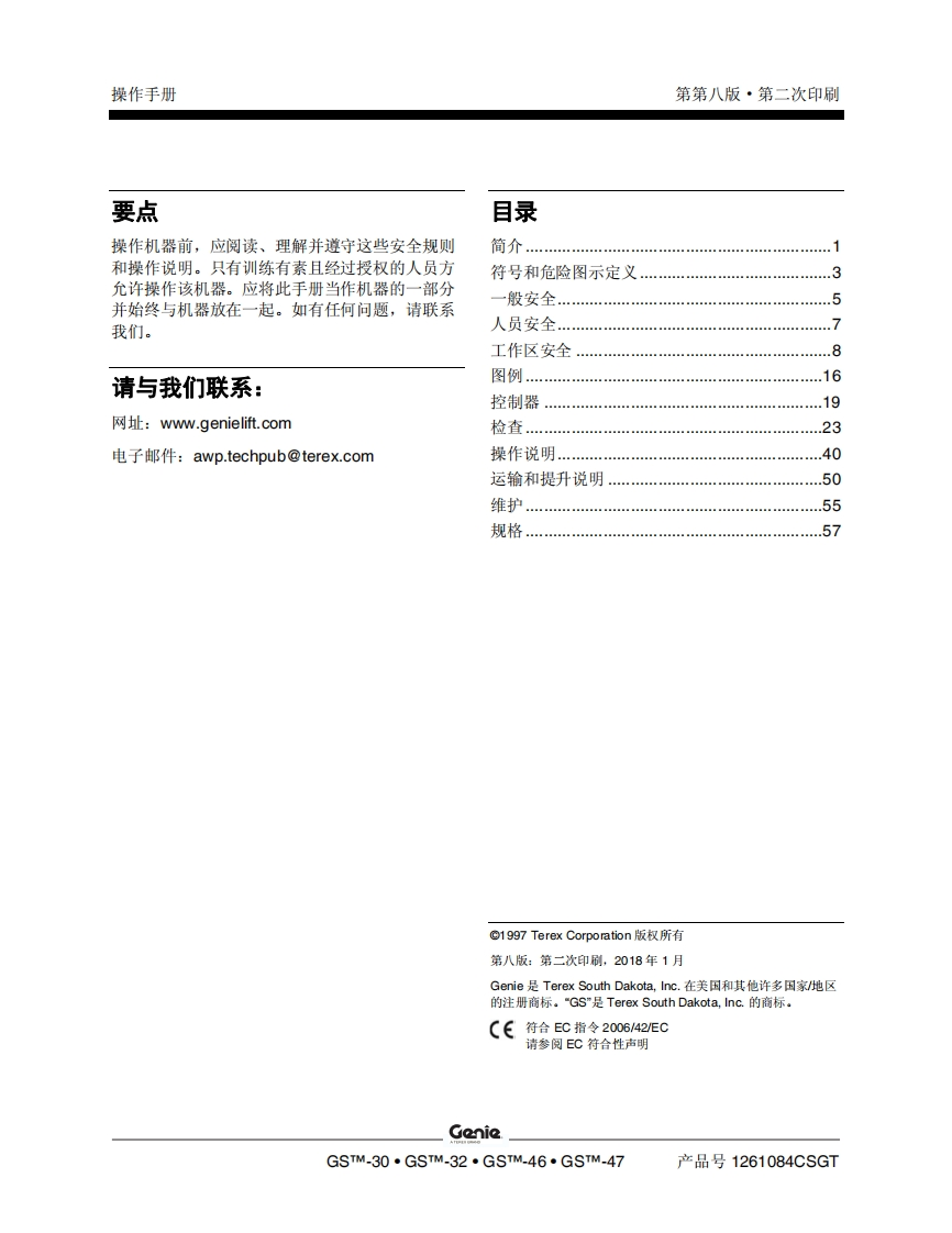 GENIE吉尼-S..1530_32-S_.1930_32-S_-2032-S.2632-S_.3232-S_-2046-S.-2646-S..3246-S_.4047曲臂吊高空作业平台操作说明书手册找手册网22小时前发布关注私信6.32MB69页048GENIE吉尼-S..1530_32-S_.1930_32-S_-2032-S.2632-S_.3232-S_-2046-S.-2646-S..3246-S_.4047曲臂吊高空作业平台操作说明书手册此内容为付费资源,请付费后查看¥19¥21黄金会员免费钻石会员免费立即购买您当前未登录!建议登陆后购买,可保存购买订单付费资源 第1页 / 共69页 第2页 / 共69页 第3页 / 共69页 第4页 / 共69页 第5页 / 共69页 第6页 / 共69页 第7页 / 共69页 第8页 / 共69页 第9页 / 共69页 第10页 / 共69页 试读已结束,还剩59页,您可下载完整版后进行离线阅读 THE ENDGENIE 文本预览 GenieA TEREX BRAND操作手册GSm-1530/32CEGSm-1930/32GSm-2032GSm-2632GSm.3232GSm-2046带有维修信息GSm-2646GSm-3246GSm-4047原始说明的翻译Eighth EditionSecond PrintingPart No.1261084CSGT 查看更多 收起部分 喜欢就支持一下吧收藏