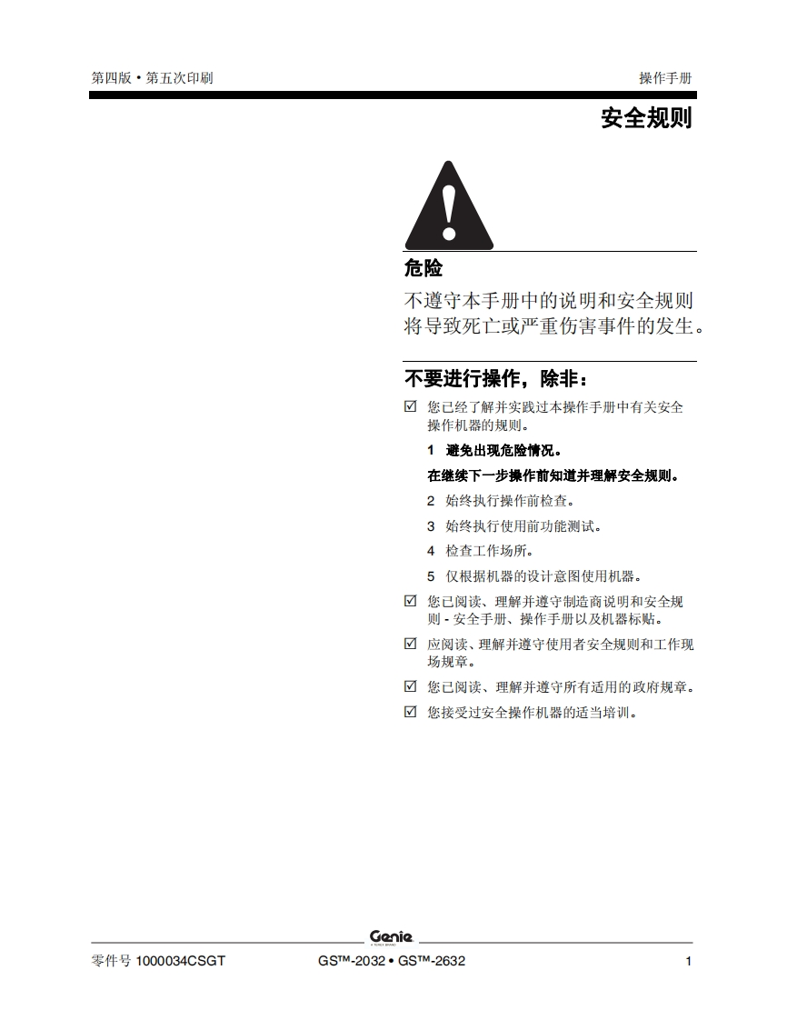 GENIE吉尼-S_.2032-S_.2632曲臂吊高空作业平台操作说明书手册找手册网22小时前发布关注私信2.89MB38页042GENIE吉尼-S_.2032-S_.2632曲臂吊高空作业平台操作说明书手册此内容为付费资源,请付费后查看¥19¥21黄金会员免费钻石会员免费立即购买您当前未登录!建议登陆后购买,可保存购买订单付费资源 第1页 / 共38页 第2页 / 共38页 第3页 / 共38页 第4页 / 共38页 第5页 / 共38页 第6页 / 共38页 第7页 / 共38页 第8页 / 共38页 第9页 / 共38页 第10页 / 共38页 试读已结束,还剩28页,您可下载完整版后进行离线阅读 THE ENDGENIE 文本预览 GenieA TEREX BRAND操作手册Gsm-2032CEGSm-2632带有维修信息原始说明的翻译Fourth EditionFifth PrintingPart No.1000034CSGT 查看更多 收起部分 喜欢就支持一下吧收藏