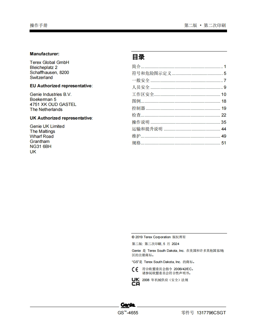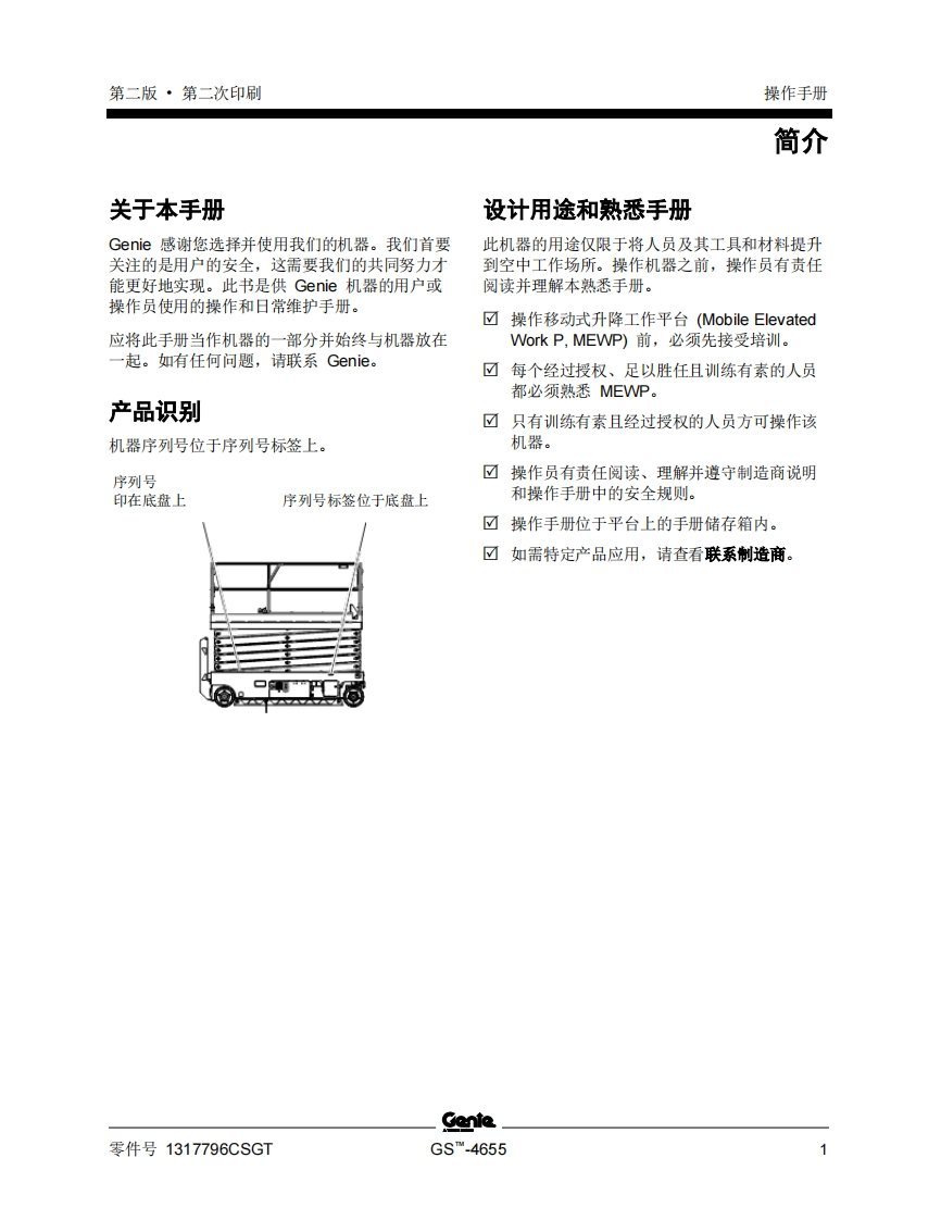 GENIE吉尼-S_.4655-序列号范围曲臂吊高空作业平台操作说明书手册找手册网22小时前发布关注私信2.88MB58页027GENIE吉尼-S_.4655-序列号范围曲臂吊高空作业平台操作说明书手册此内容为付费资源,请付费后查看¥19¥21黄金会员免费钻石会员免费立即购买您当前未登录!建议登陆后购买,可保存购买订单付费资源 第1页 / 共58页 第2页 / 共58页 第3页 / 共58页 第4页 / 共58页 第5页 / 共58页 第6页 / 共58页 第7页 / 共58页 第8页 / 共58页 第9页 / 共58页 第10页 / 共58页 试读已结束,还剩48页,您可下载完整版后进行离线阅读 THE ENDGENIE 文本预览 GenieA TEREX BRAND操作手册序列号范围GSm-4655带有维修信息原始说明的翻译Second EditionSecond PrintingPart No.1317796CSGT 查看更多 收起部分 喜欢就支持一下吧收藏
