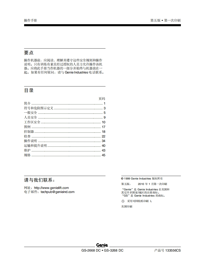 GENIE吉尼-S-2668-DC-iS-3268-DC曲臂吊高空作业平台操作说明书手册找手册网22小时前发布关注私信4.65MB49页045GENIE吉尼-S-2668-DC-iS-3268-DC曲臂吊高空作业平台操作说明书手册此内容为付费资源,请付费后查看¥19¥21黄金会员免费钻石会员免费立即购买您当前未登录!建议登陆后购买,可保存购买订单付费资源 第1页 / 共49页 第2页 / 共49页 第3页 / 共49页 第4页 / 共49页 第5页 / 共49页 第6页 / 共49页 第7页 / 共49页 第8页 / 共49页 第9页 / 共49页 第10页 / 共49页 试读已结束,还剩39页,您可下载完整版后进行离线阅读 THE ENDGENIE 文本预览 GonieA TEREX COMPANY操作手册GS-2668 DCANSI/CSANorth AmericaSouth AmericaGS-3268 DCAsiaAUSAustralia包括维修信息Fifth EditionFirst PrintingPart No.133556CS 查看更多 收起部分 喜欢就支持一下吧收藏