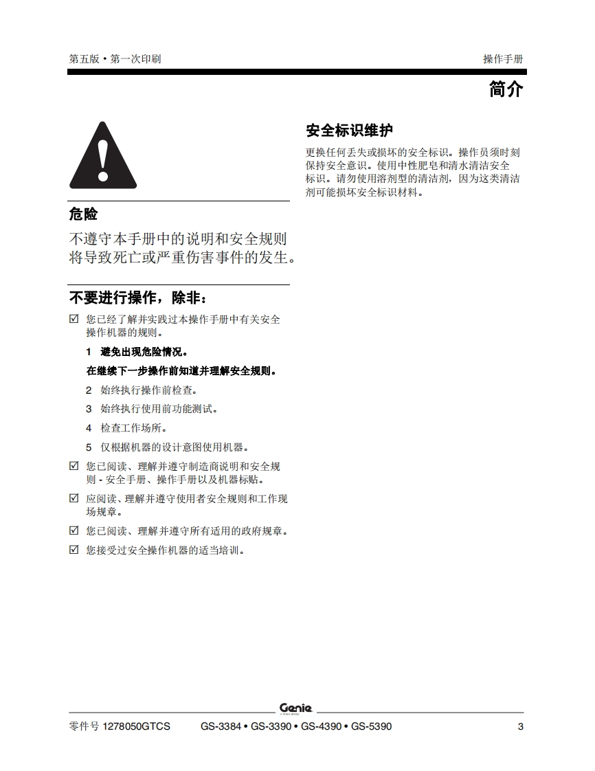 GENIE吉尼-S-3384-S-3390-S-4390-S-5390曲臂吊高空作业平台操作说明书手册找手册网22小时前发布关注私信3.64MB52页047GENIE吉尼-S-3384-S-3390-S-4390-S-5390曲臂吊高空作业平台操作说明书手册此内容为付费资源,请付费后查看¥19¥21黄金会员免费钻石会员免费立即购买您当前未登录!建议登陆后购买,可保存购买订单付费资源 第1页 / 共52页 第2页 / 共52页 第3页 / 共52页 第4页 / 共52页 第5页 / 共52页 第6页 / 共52页 第7页 / 共52页 第8页 / 共52页 第9页 / 共52页 第10页 / 共52页 试读已结束,还剩42页,您可下载完整版后进行离线阅读 THE ENDGENIE 文本预览 GenieA TEREX BRAND操作手册GS-3384CEGs-3390GS-4390GS-5390带有维修信息原始说明的翻译Fifth EditionFirst PrintingPart No.1278050GTCS 查看更多 收起部分 喜欢就支持一下吧收藏