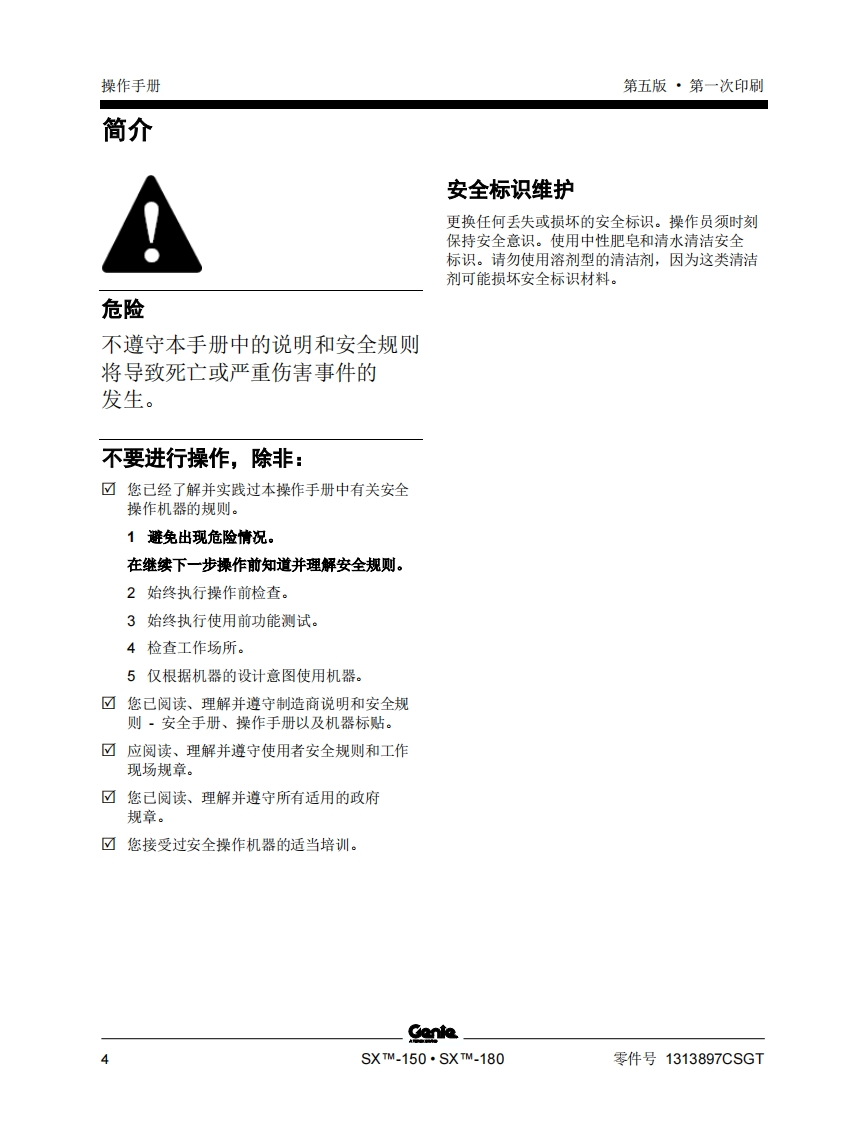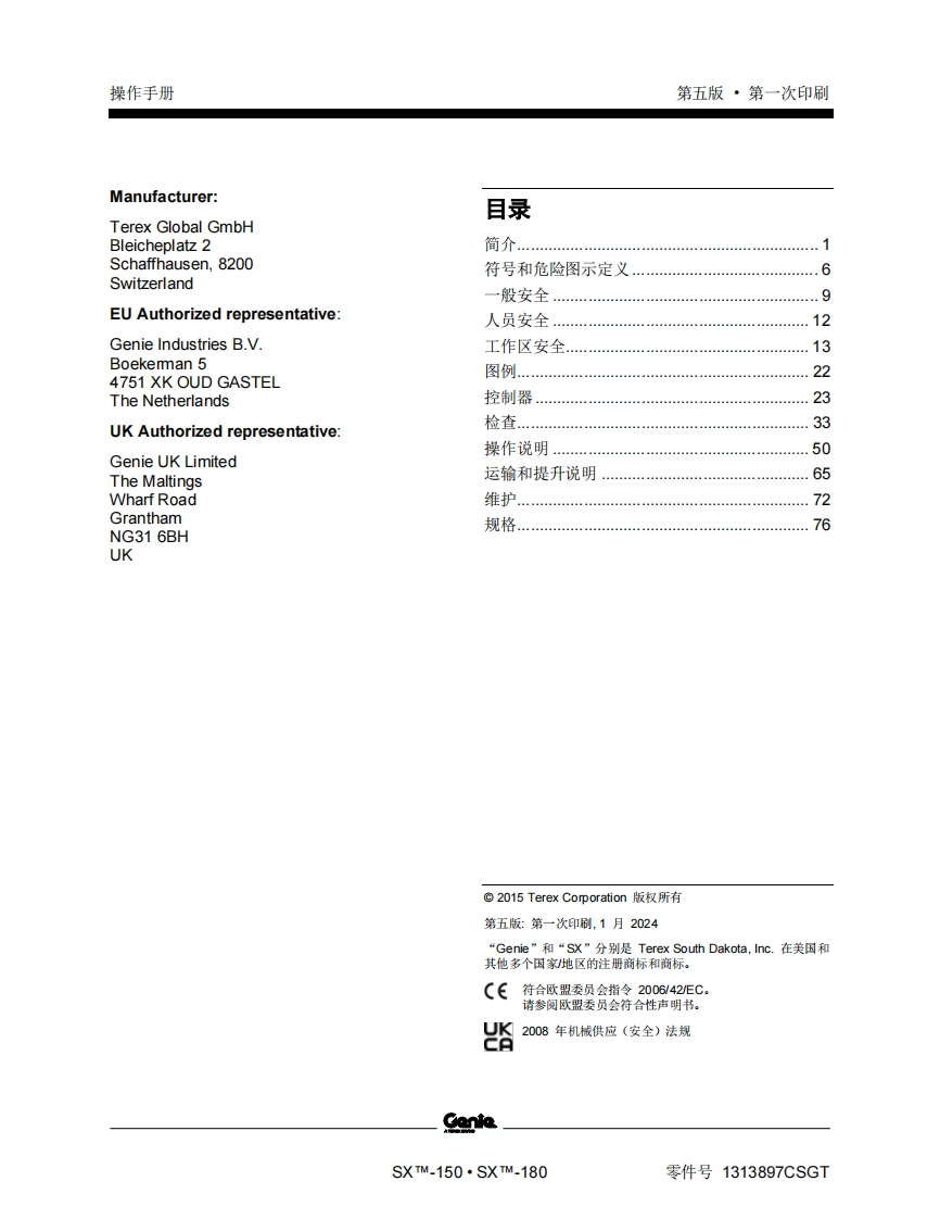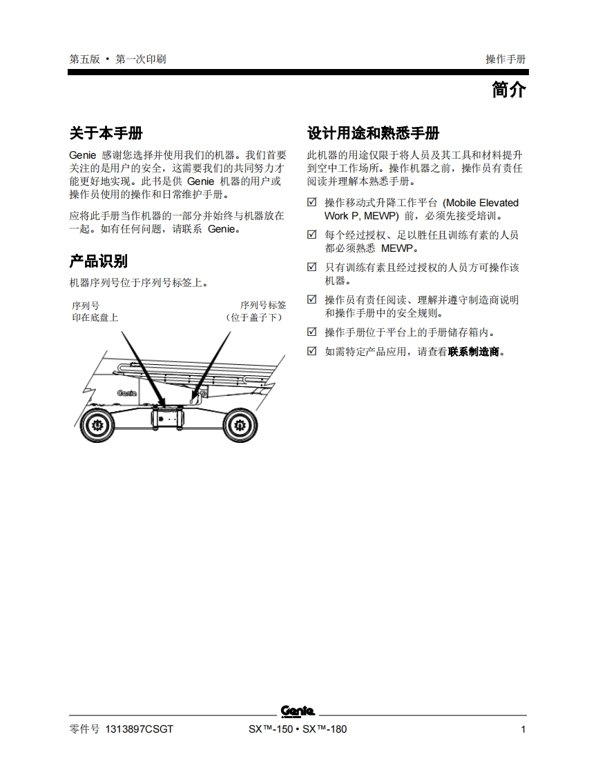 GENIE吉尼-X_-150-sx_-180-序列号范围曲臂吊高空作业平台操作说明书手册找手册网22小时前发布关注私信3.31MB86页045GENIE吉尼-X_-150-sx_-180-序列号范围曲臂吊高空作业平台操作说明书手册此内容为付费资源,请付费后查看¥19¥21黄金会员免费钻石会员免费立即购买您当前未登录!建议登陆后购买,可保存购买订单付费资源 第1页 / 共86页 第2页 / 共86页 第3页 / 共86页 第4页 / 共86页 第5页 / 共86页 第6页 / 共86页 第7页 / 共86页 第8页 / 共86页 第9页 / 共86页 第10页 / 共86页 试读已结束,还剩76页,您可下载完整版后进行离线阅读 THE ENDGENIE 文本预览 GenieA TEREX BRAND操作手册序列号范围SX-150SX-180带有维修信息原始说明的翻译Fifth EditionFirst PrintingPart No.1313897CSGT 查看更多 收起部分 喜欢就支持一下吧收藏