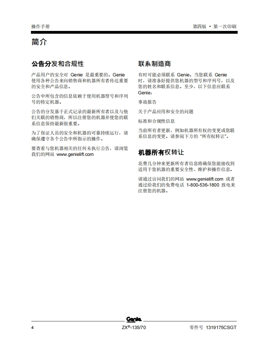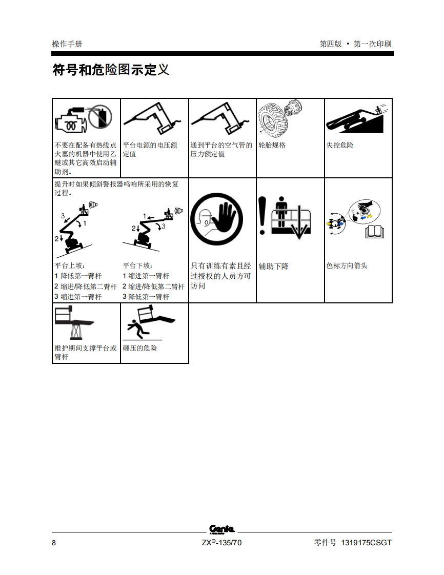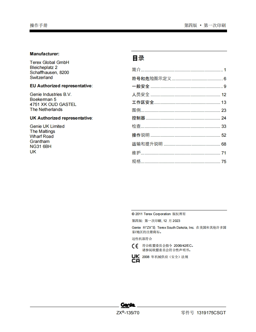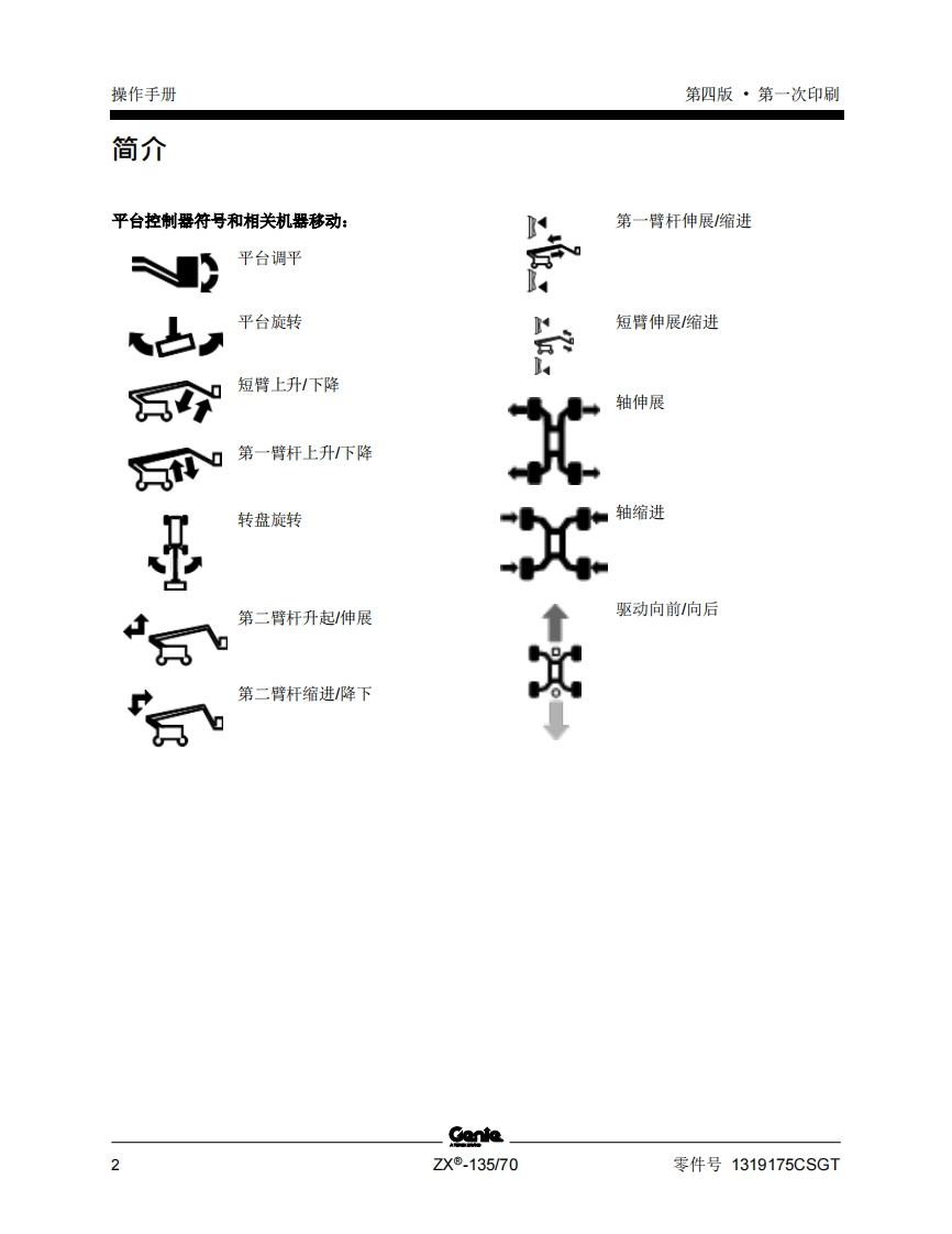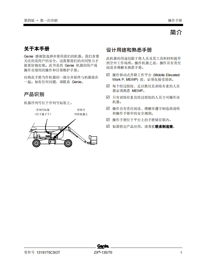 GENIE吉尼-Xe.135_70-ith-Jib—Extend—序列号范围曲臂吊高空作业平台操作说明书手册找手册网22小时前发布关注私信3.90MB83页042GENIE吉尼-Xe.135_70-ith-Jib—Extend—序列号范围曲臂吊高空作业平台操作说明书手册此内容为付费资源,请付费后查看¥19¥21黄金会员免费钻石会员免费立即购买您当前未登录!建议登陆后购买,可保存购买订单付费资源 第1页 / 共83页 第2页 / 共83页 第3页 / 共83页 第4页 / 共83页 第5页 / 共83页 第6页 / 共83页 第7页 / 共83页 第8页 / 共83页 第9页 / 共83页 第10页 / 共83页 试读已结束,还剩73页,您可下载完整版后进行离线阅读 THE ENDGENIE 文本预览 GenieA TEREX BRAND操作手册序列号范围ZX®.135/70vith Jib-Extend®带有维修信息原始说明的翻译Fourth EditionFirst PrintingPart No.1319175CSGT 查看更多 收起部分 喜欢就支持一下吧收藏