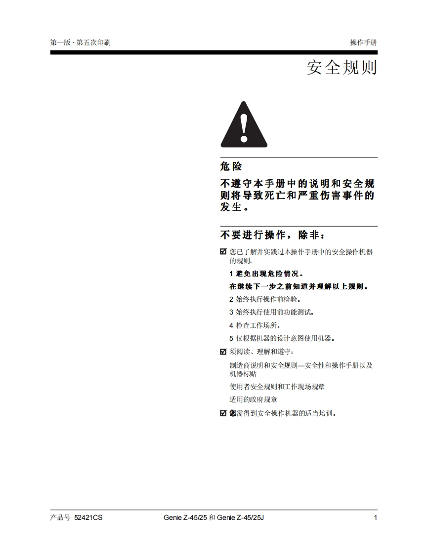 GENIE吉尼-Z-45125-Z-45125J曲臂吊高空作业平台操作说明书手册找手册网22小时前发布关注私信12.02MB32页023GENIE吉尼-Z-45125-Z-45125J曲臂吊高空作业平台操作说明书手册此内容为付费资源,请付费后查看¥19¥21黄金会员免费钻石会员免费立即购买您当前未登录!建议登陆后购买,可保存购买订单付费资源 第1页 / 共32页 第2页 / 共32页 第3页 / 共32页 第4页 / 共32页 第5页 / 共32页 第6页 / 共32页 第7页 / 共32页 第8页 / 共32页 第9页 / 共32页 第10页 / 共32页 试读已结束,还剩22页,您可下载完整版后进行离线阅读 THE ENDGENIE 文本预览 Gonie操作手册First EditionFifth Printing及维修信息Part No.52421CSZ-45/25Z.45/25J 查看更多 收起部分 喜欢就支持一下吧收藏