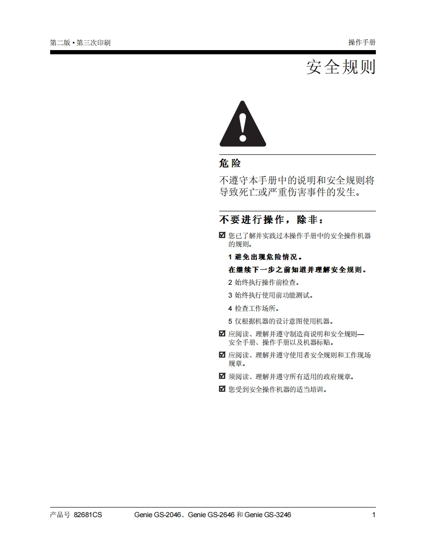 GENIE吉尼-操作手册-及维修信息-GS-2046-GS-2646-GS-3246曲臂吊高空作业平台操作说明书手册找手册网22小时前发布关注私信5.56MB39页040GENIE吉尼-操作手册-及维修信息-GS-2046-GS-2646-GS-3246曲臂吊高空作业平台操作说明书手册此内容为付费资源,请付费后查看¥19¥21黄金会员免费钻石会员免费立即购买您当前未登录!建议登陆后购买,可保存购买订单付费资源 第1页 / 共39页 第2页 / 共39页 第3页 / 共39页 第4页 / 共39页 第5页 / 共39页 第6页 / 共39页 第7页 / 共39页 第8页 / 共39页 第9页 / 共39页 第10页 / 共39页 试读已结束,还剩29页,您可下载完整版后进行离线阅读 THE ENDGENIE 文本预览 Gonio操作手册Second EditionThird Printing及维修信息Part No.82681CSGS"2046GS"2646GS"3246 查看更多 收起部分 喜欢就支持一下吧收藏