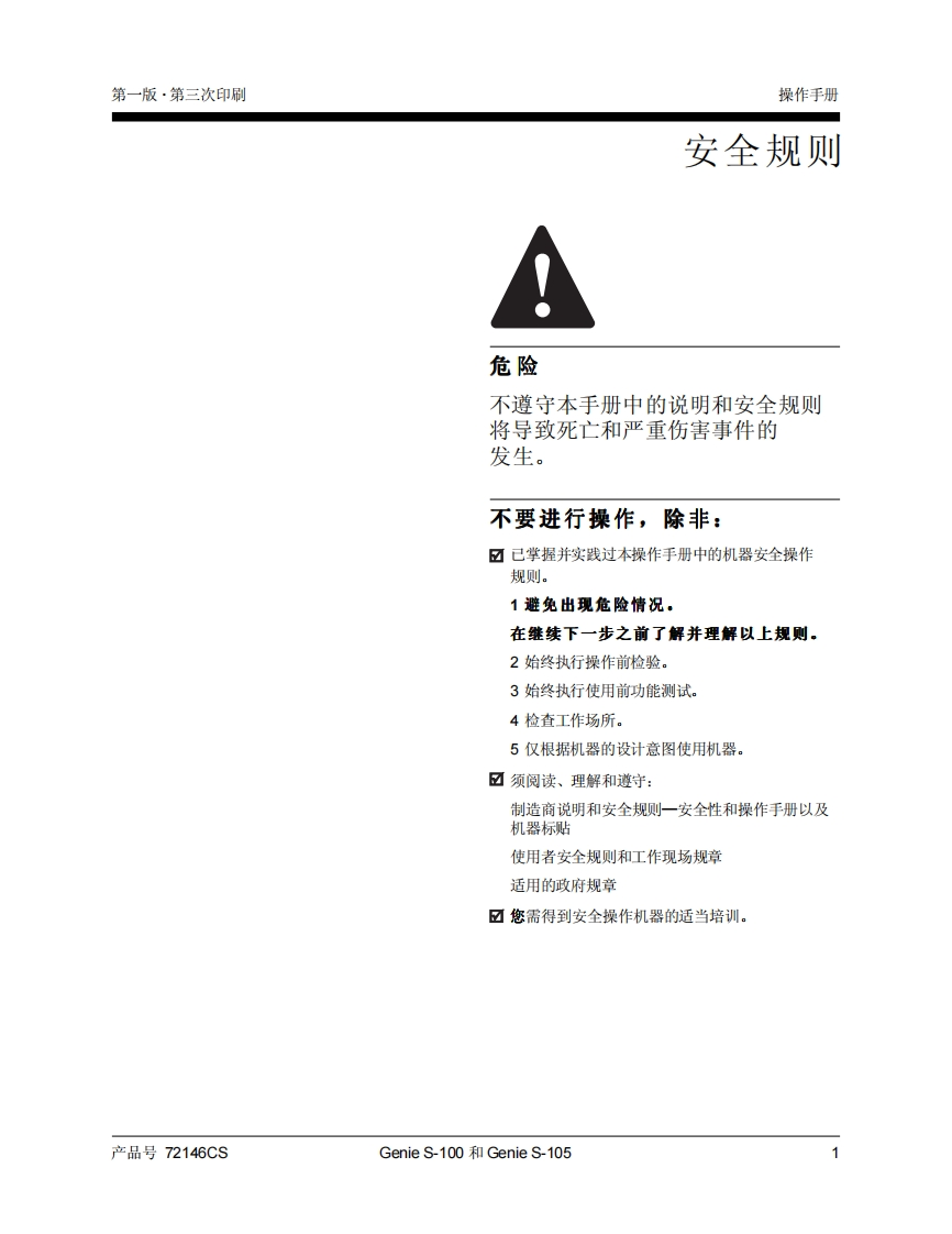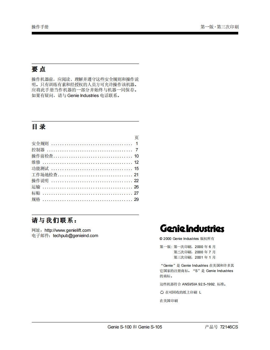 GENIE吉尼-及维修信息-S_100-S_105曲臂吊高空作业平台操作说明书手册找手册网22小时前发布关注私信12.09MB33页039GENIE吉尼-及维修信息-S_100-S_105曲臂吊高空作业平台操作说明书手册此内容为付费资源,请付费后查看¥19¥21黄金会员免费钻石会员免费立即购买您当前未登录!建议登陆后购买,可保存购买订单付费资源 第1页 / 共33页 第2页 / 共33页 第3页 / 共33页 第4页 / 共33页 第5页 / 共33页 第6页 / 共33页 第7页 / 共33页 第8页 / 共33页 第9页 / 共33页 第10页 / 共33页 试读已结束,还剩23页,您可下载完整版后进行离线阅读 THE ENDGENIE 文本预览 Gonie操作手册First EditionThird Printing及维修信息Part No.72146CSS100S"105 查看更多 收起部分 喜欢就支持一下吧收藏