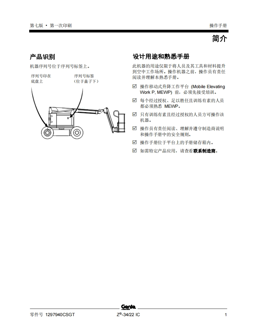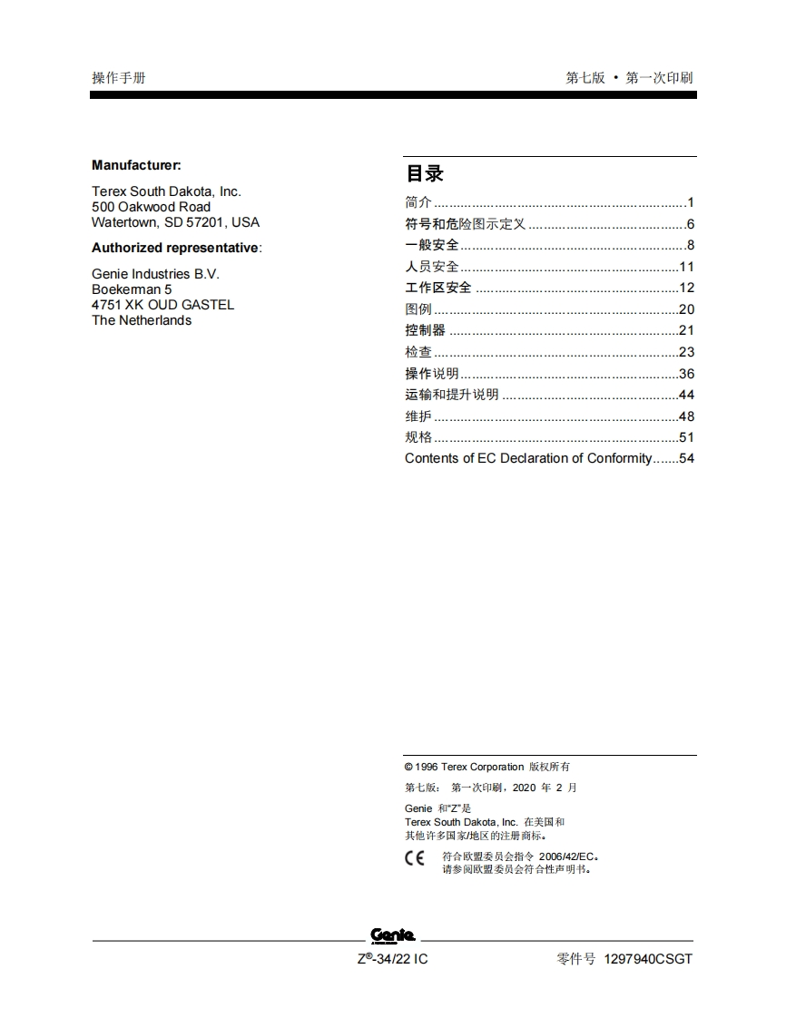 GENIE吉尼-序列号范围–.34_22-1C-Z34F-14001-之后-Z34D-1900-之后曲臂吊高空作业平台操作说明书手册找手册网21小时前发布关注私信1.54MB57页023GENIE吉尼-序列号范围–.34_22-1C-Z34F-14001-之后-Z34D-1900-之后曲臂吊高空作业平台操作说明书手册此内容为付费资源,请付费后查看¥19¥21黄金会员免费钻石会员免费立即购买您当前未登录!建议登陆后购买,可保存购买订单付费资源 第1页 / 共57页 第2页 / 共57页 第3页 / 共57页 第4页 / 共57页 第5页 / 共57页 第6页 / 共57页 第7页 / 共57页 第8页 / 共57页 第9页 / 共57页 第10页 / 共57页 试读已结束,还剩47页,您可下载完整版后进行离线阅读 THE ENDGENIE 文本预览 GenieA TEREX BRAND操作手册序列号范围Z®.34/221CZ34F-14001之后CEZ34D1900之后带有维修信息原始说明的翻译Seventh EditionFirst PrintingPart No.1297940CSGT 查看更多 收起部分 喜欢就支持一下吧收藏