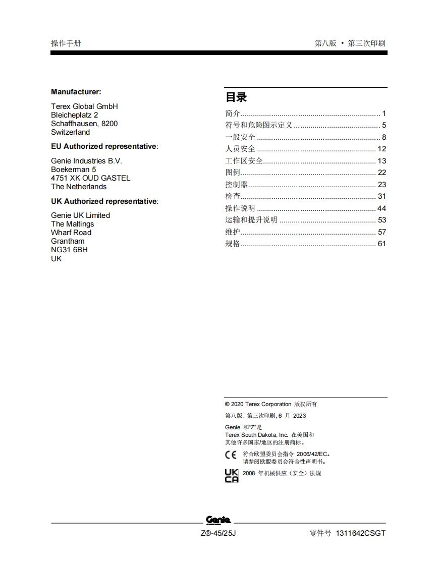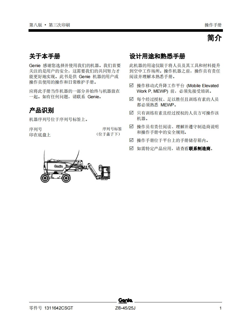 GENIE吉尼-序列号范围–.45_25J-Z4525D-3958-之后-C-Power曲臂吊高空作业平台操作说明书手册找手册网21小时前发布关注私信3.38MB69页042GENIE吉尼-序列号范围–.45_25J-Z4525D-3958-之后-C-Power曲臂吊高空作业平台操作说明书手册此内容为付费资源,请付费后查看¥19¥21黄金会员免费钻石会员免费立即购买您当前未登录!建议登陆后购买,可保存购买订单付费资源 第1页 / 共69页 第2页 / 共69页 第3页 / 共69页 第4页 / 共69页 第5页 / 共69页 第6页 / 共69页 第7页 / 共69页 第8页 / 共69页 第9页 / 共69页 第10页 / 共69页 试读已结束,还剩59页,您可下载完整版后进行离线阅读 THE ENDGENIE 文本预览 GenieA TEREX BRAND操作手册序列号范围Z®.45/25JZ4525D-3958之后IC Power带有维修信息原始说明的翻译Eighth EditionThird PrintingPart No.1311642CSGT 查看更多 收起部分 喜欢就支持一下吧收藏