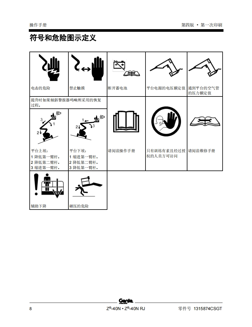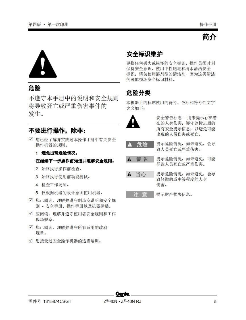 GENIE吉尼-序列号范围-®.40N-®.4ON-RJ-Z40NF-6900-之后曲臂吊高空作业平台操作说明书手册找手册网21小时前发布关注私信2.11MB61页048GENIE吉尼-序列号范围-®.40N-®.4ON-RJ-Z40NF-6900-之后曲臂吊高空作业平台操作说明书手册此内容为付费资源,请付费后查看¥19¥21黄金会员免费钻石会员免费立即购买您当前未登录!建议登陆后购买,可保存购买订单付费资源 第1页 / 共61页 第2页 / 共61页 第3页 / 共61页 第4页 / 共61页 第5页 / 共61页 第6页 / 共61页 第7页 / 共61页 第8页 / 共61页 第9页 / 共61页 第10页 / 共61页 试读已结束,还剩51页,您可下载完整版后进行离线阅读 THE ENDGENIE 文本预览 GenieA TEREX BRAND操作手册序列号范围Z®.40NZ40NF-6900之后蓝Z®.40NRJ带有维修信息原始说明的翻译Fourth EditionFirst PrintingPart No.1315874CSGT 查看更多 收起部分 喜欢就支持一下吧收藏