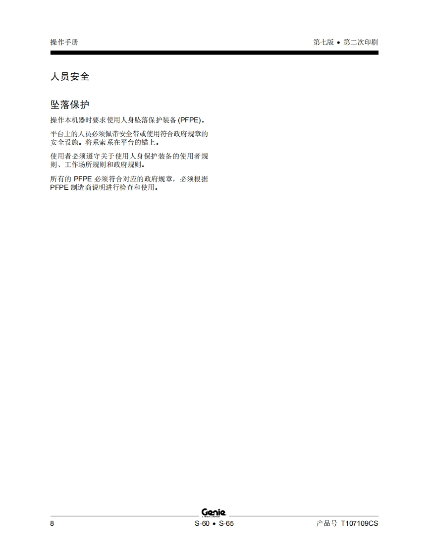 GENIE吉尼-序列号范围–60–65-S6010-21000之后曲臂吊高空作业平台操作说明书手册找手册网19小时前发布关注私信1.96MB58页047GENIE吉尼-序列号范围–60–65-S6010-21000之后曲臂吊高空作业平台操作说明书手册此内容为付费资源,请付费后查看¥19¥21黄金会员免费钻石会员免费立即购买您当前未登录!建议登陆后购买,可保存购买订单付费资源 第1页 / 共58页 第2页 / 共58页 第3页 / 共58页 第4页 / 共58页 第5页 / 共58页 第6页 / 共58页 第7页 / 共58页 第8页 / 共58页 第9页 / 共58页 第10页 / 共58页 试读已结束,还剩48页,您可下载完整版后进行离线阅读 THE ENDGENIE 文本预览 GonieA TEREX COMPANY操作手册序列号范围S-60S6010-21000之后CES-65包括维修信息原始说明的翻译Seventh EditionSecond PrintingPart No.T107109CS 查看更多 收起部分 喜欢就支持一下吧收藏