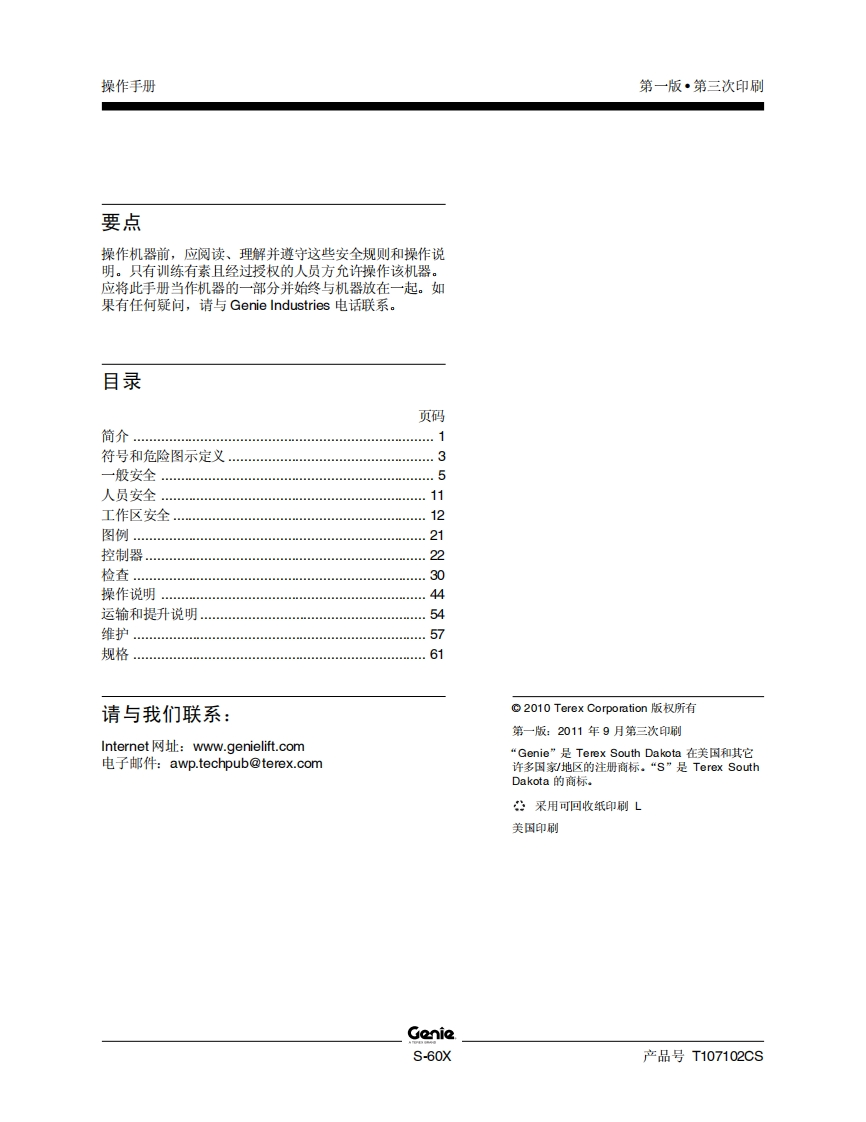 GENIE吉尼-序列号范围–60X-S6010-21000之后曲臂吊高空作业平台操作说明书手册找手册网19小时前发布关注私信2.84MB65页032GENIE吉尼-序列号范围–60X-S6010-21000之后曲臂吊高空作业平台操作说明书手册此内容为付费资源,请付费后查看¥19¥21黄金会员免费钻石会员免费立即购买您当前未登录!建议登陆后购买,可保存购买订单付费资源 第1页 / 共65页 第2页 / 共65页 第3页 / 共65页 第4页 / 共65页 第5页 / 共65页 第6页 / 共65页 第7页 / 共65页 第8页 / 共65页 第9页 / 共65页 第10页 / 共65页 试读已结束,还剩55页,您可下载完整版后进行离线阅读 THE ENDGENIE 文本预览 GenieA TEREX BRAND操作手册序列号范围S-60Xs6010-21000之后ANSI/CSANorth AmericaSouth AmericaAsia包括维修信息First EditionThird PrintingPart No.T107102CS 查看更多 收起部分 喜欢就支持一下吧收藏