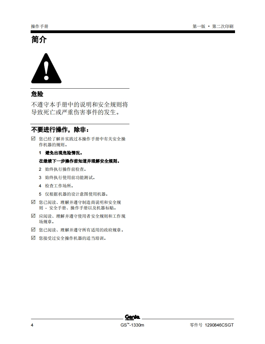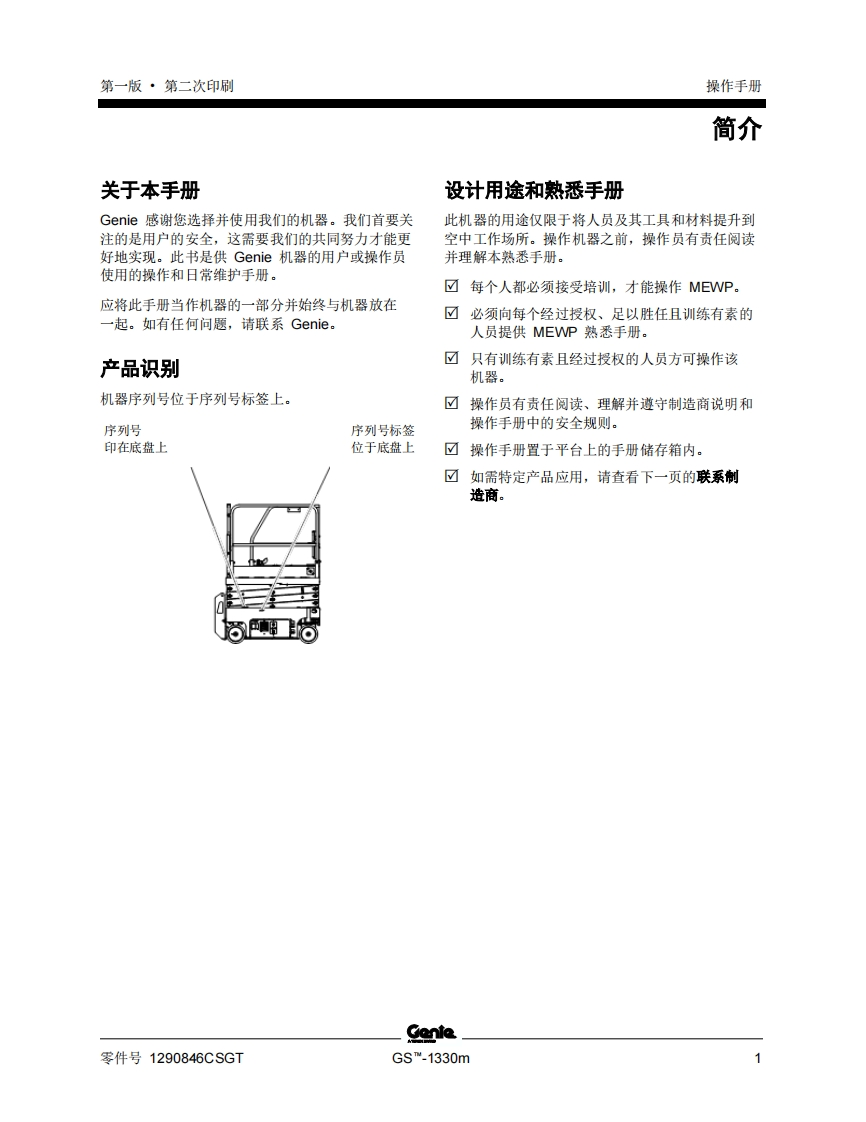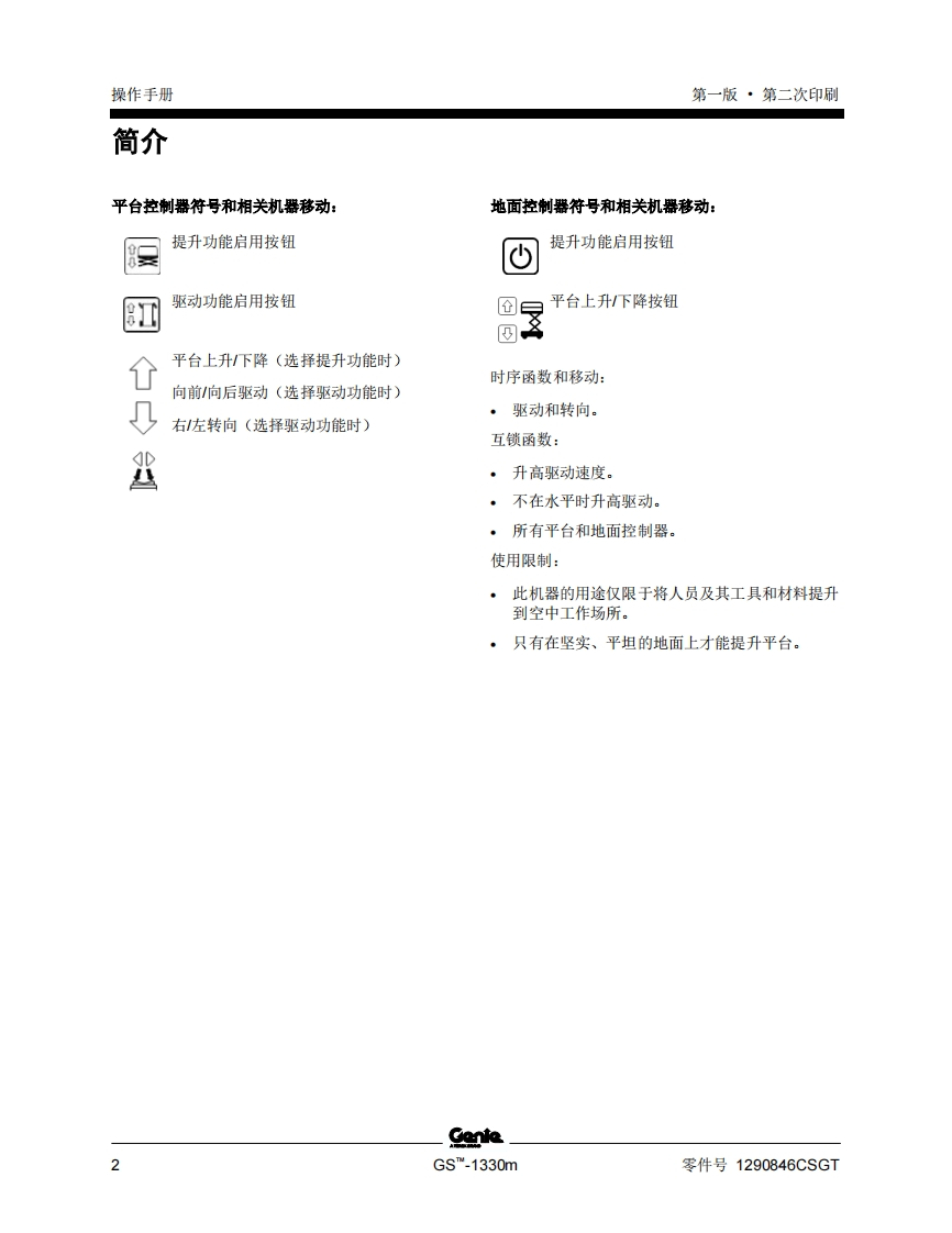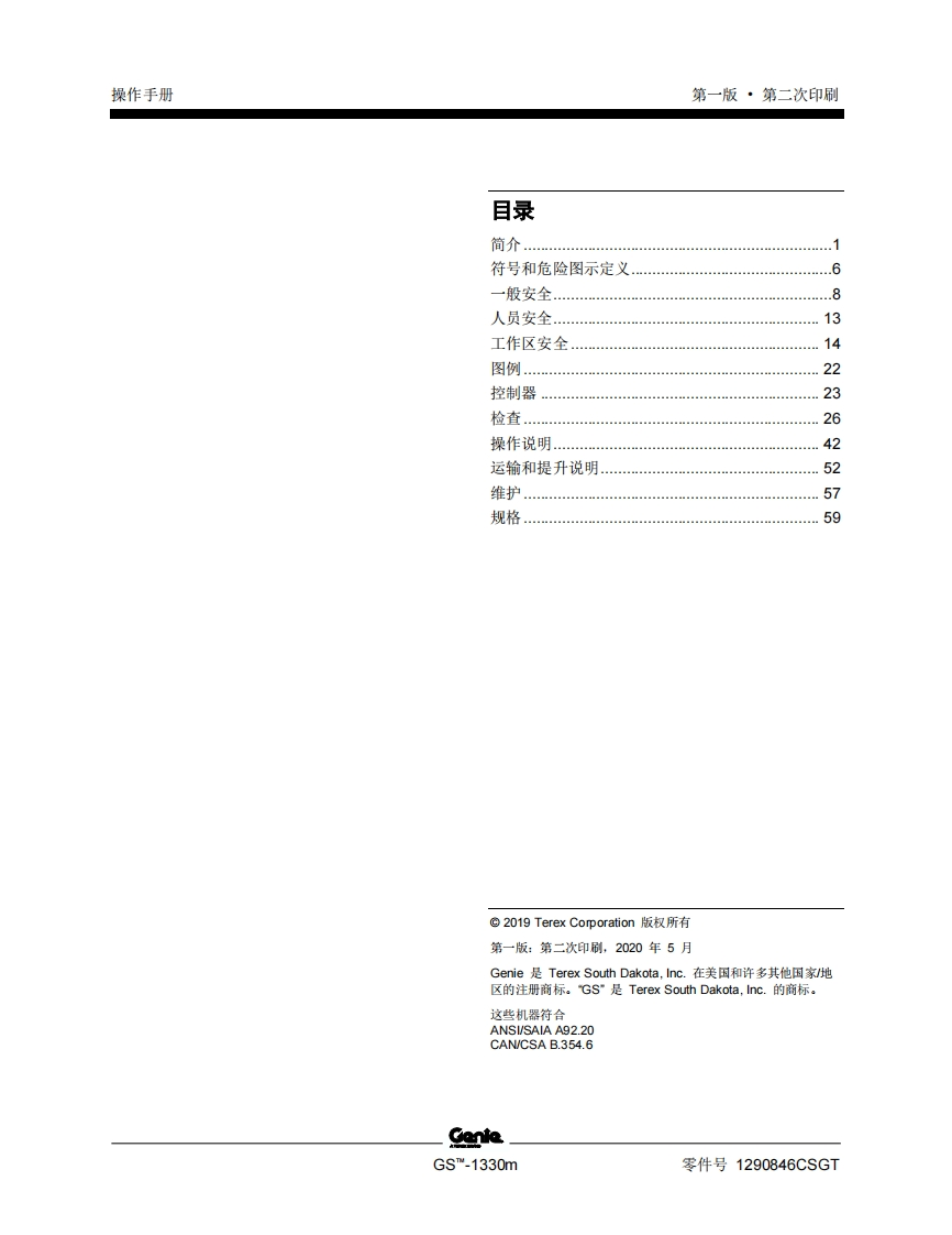 GENIE吉尼-序列号范围-S..1330m-从-GS30MD-101-到-GS30MD-3168曲臂吊高空作业平台操作说明书手册找手册网19小时前发布关注私信2.27MB62页043GENIE吉尼-序列号范围-S..1330m-从-GS30MD-101-到-GS30MD-3168曲臂吊高空作业平台操作说明书手册此内容为付费资源,请付费后查看¥19¥21黄金会员免费钻石会员免费立即购买您当前未登录!建议登陆后购买,可保存购买订单付费资源 第1页 / 共62页 第2页 / 共62页 第3页 / 共62页 第4页 / 共62页 第5页 / 共62页 第6页 / 共62页 第7页 / 共62页 第8页 / 共62页 第9页 / 共62页 第10页 / 共62页 试读已结束,还剩52页,您可下载完整版后进行离线阅读 THE ENDGENIE 文本预览 GenieA TEREX BRAND操作手册序列号范围GSTM-1330m从GS30MD-101ANSI/CSA到GS30MD-3168North AmericaSouth AmericaAsia带有维修信息原始说明的翻译First EditionSecond PrintingPart No.1290846CSGT 查看更多 收起部分 喜欢就支持一下吧收藏