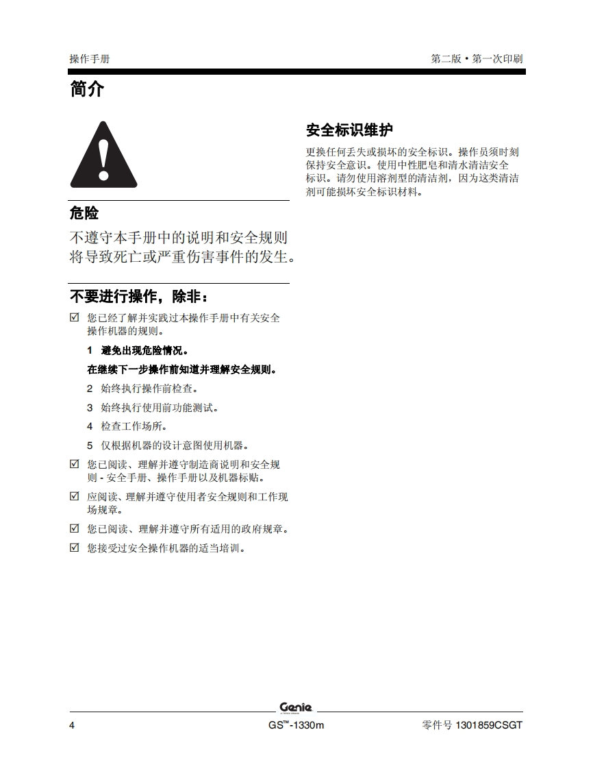 GENIE吉尼-序列号范围-S.1330m-GS30MD-3169-之后_1曲臂吊高空作业平台操作说明书手册找手册网19小时前发布关注私信5.05MB56页022GENIE吉尼-序列号范围-S.1330m-GS30MD-3169-之后_1曲臂吊高空作业平台操作说明书手册此内容为付费资源,请付费后查看¥19¥21黄金会员免费钻石会员免费立即购买您当前未登录!建议登陆后购买,可保存购买订单付费资源 第1页 / 共56页 第2页 / 共56页 第3页 / 共56页 第4页 / 共56页 第5页 / 共56页 第6页 / 共56页 第7页 / 共56页 第8页 / 共56页 第9页 / 共56页 第10页 / 共56页 试读已结束,还剩46页,您可下载完整版后进行离线阅读 THE ENDGENIE 文本预览 GenieA TEREX BRAND操作手册序列号范围GSTM-1330mGS30MD-3169之后CE带有维修信息原始说明的翻译Second EditionFirst PrintingPart No.1301859CSGT 查看更多 收起部分 喜欢就支持一下吧收藏