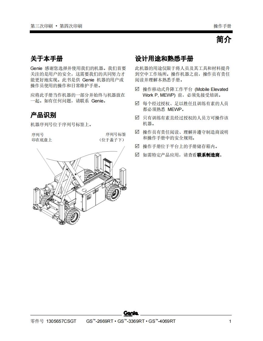 GENIE吉尼-序列号范围-S.-2669RT-S_-3369RT-S_.4069RT-GS69F-18000-之后-GS69M-101-之后曲臂吊高空作业平台操作说明书手册找手册网19小时前发布关注私信3.65MB60页031GENIE吉尼-序列号范围-S.-2669RT-S_-3369RT-S_.4069RT-GS69F-18000-之后-GS69M-101-之后曲臂吊高空作业平台操作说明书手册此内容为付费资源,请付费后查看¥19¥21黄金会员免费钻石会员免费立即购买您当前未登录!建议登陆后购买,可保存购买订单付费资源 第1页 / 共60页 第2页 / 共60页 第3页 / 共60页 第4页 / 共60页 第5页 / 共60页 第6页 / 共60页 第7页 / 共60页 第8页 / 共60页 第9页 / 共60页 第10页 / 共60页 试读已结束,还剩50页,您可下载完整版后进行离线阅读 THE ENDGENIE 文本预览 GenieA TEREX BRAND操作手册序列号范围GSM-2669RTGS69F-18000之后Gs69M-101之后GSTM-3369RTGSTM4069RT带有维修信息原始说明的翻译Third EditionFourth PrintingPart No.1305657CSGT 查看更多 收起部分 喜欢就支持一下吧收藏