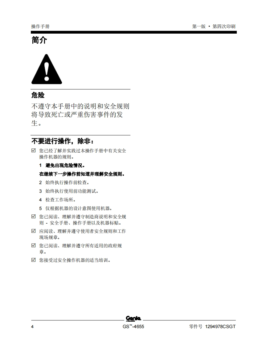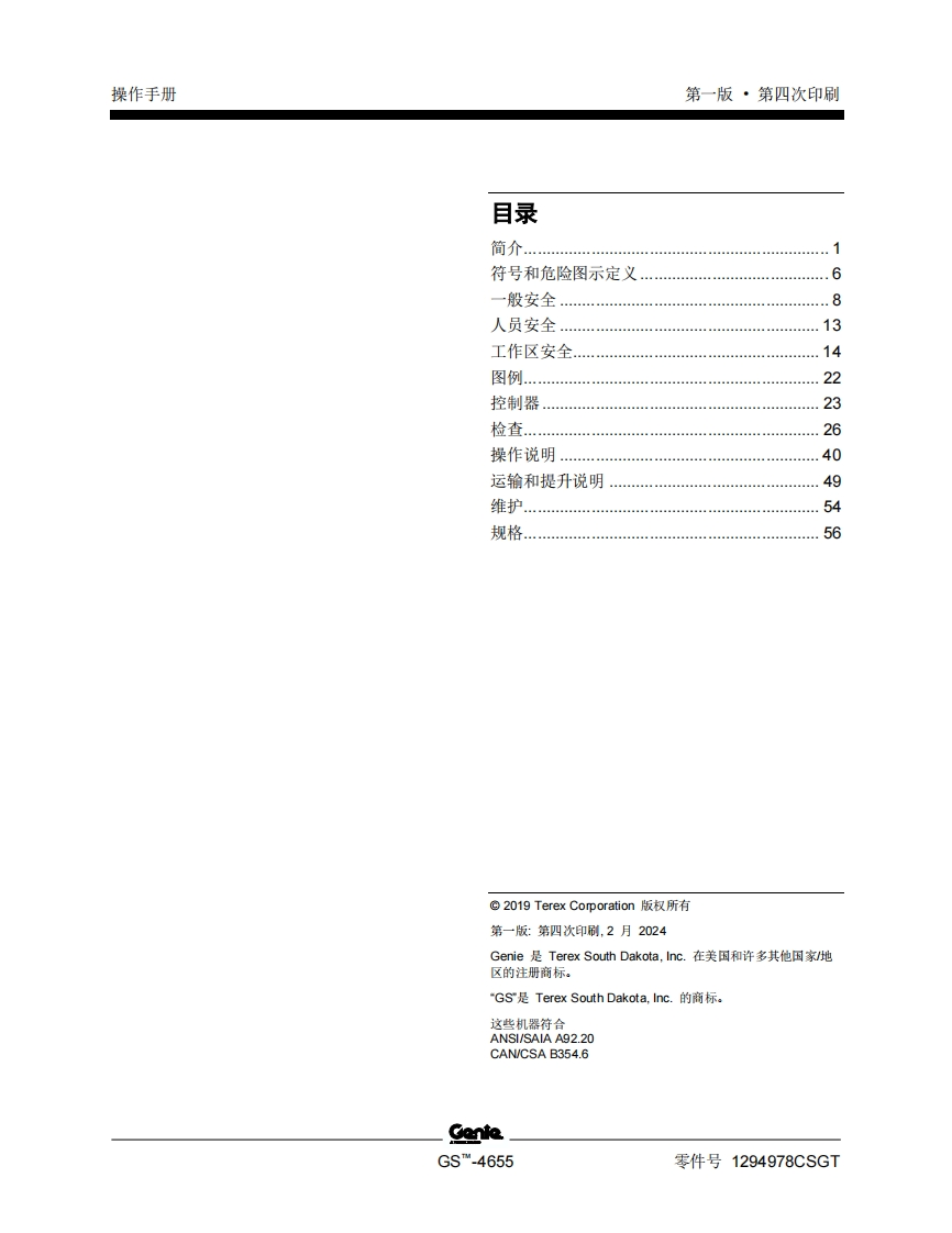 GENIE吉尼-序列号范围-S.4655-GS55F-101-之后-GS55D-101-之后曲臂吊高空作业平台操作说明书手册找手册网19小时前发布关注私信4.58MB59页021GENIE吉尼-序列号范围-S.4655-GS55F-101-之后-GS55D-101-之后曲臂吊高空作业平台操作说明书手册此内容为付费资源,请付费后查看¥19¥21黄金会员免费钻石会员免费立即购买您当前未登录!建议登陆后购买,可保存购买订单付费资源 第1页 / 共59页 第2页 / 共59页 第3页 / 共59页 第4页 / 共59页 第5页 / 共59页 第6页 / 共59页 第7页 / 共59页 第8页 / 共59页 第9页 / 共59页 第10页 / 共59页 试读已结束,还剩49页,您可下载完整版后进行离线阅读 THE ENDGENIE 文本预览 GenieA TEREX BRAND操作手册序列号范围GSTM-4655GS55f-101之后GS55D-101之后ANSI/CSANorth AmericaSouth AmericaAsia带有维修信息原始说明的翻译First EditionFourth PrintingPart No.1294978CSGT 查看更多 收起部分 喜欢就支持一下吧收藏