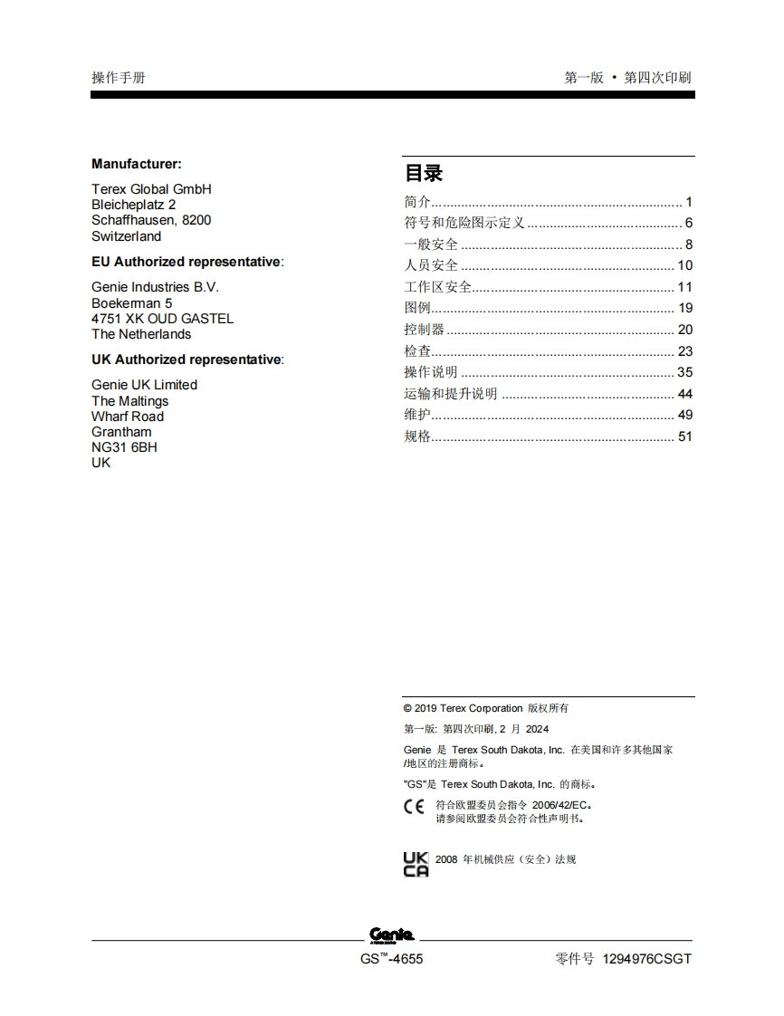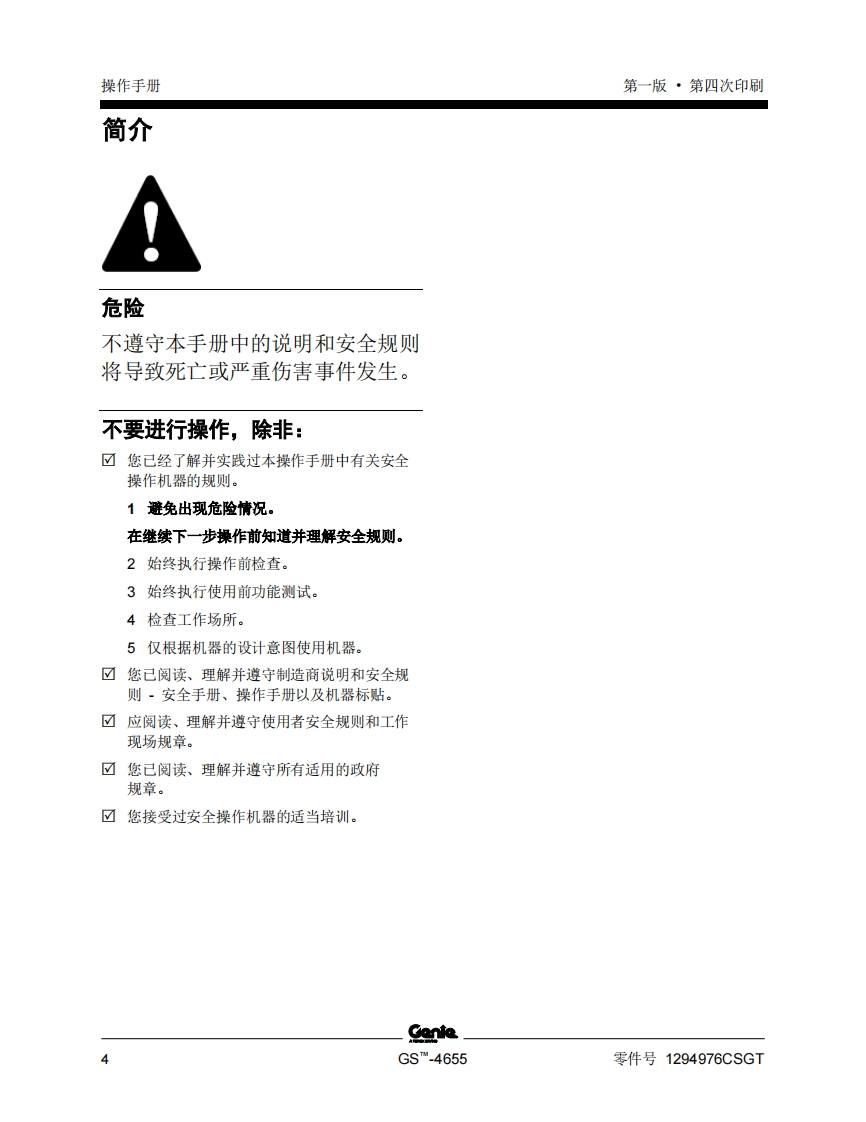 GENIE吉尼-序列号范围-S_.4655-GS55F-101-之后-GS55D-101-之后曲臂吊高空作业平台操作说明书手册找手册网19小时前发布关注私信2.65MB58页037GENIE吉尼-序列号范围-S_.4655-GS55F-101-之后-GS55D-101-之后曲臂吊高空作业平台操作说明书手册此内容为付费资源,请付费后查看¥19¥21黄金会员免费钻石会员免费立即购买您当前未登录!建议登陆后购买,可保存购买订单付费资源 第1页 / 共58页 第2页 / 共58页 第3页 / 共58页 第4页 / 共58页 第5页 / 共58页 第6页 / 共58页 第7页 / 共58页 第8页 / 共58页 第9页 / 共58页 第10页 / 共58页 试读已结束,还剩48页,您可下载完整版后进行离线阅读 THE ENDGENIE 文本预览 GenieA TEREX BRAND操作手册序列号范围GSm-4655GS55F-101之后GS55D-101之后带有维修信息原始说明的翻译First EditionFourth PrintingPart No.1294976CSGT 查看更多 收起部分 喜欢就支持一下吧收藏