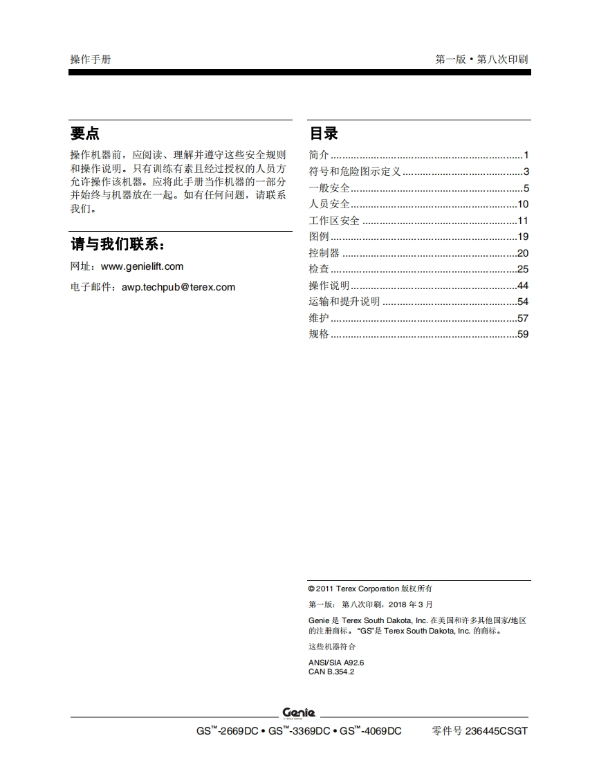 GENIE吉尼-序列号范围-S…-2669DC-GS6912-1300-之后-S_.3069DC-S.-4069DC曲臂吊高空作业平台操作说明书手册找手册网19小时前发布关注私信9.12MB64页049GENIE吉尼-序列号范围-S…-2669DC-GS6912-1300-之后-S_.3069DC-S.-4069DC曲臂吊高空作业平台操作说明书手册此内容为付费资源,请付费后查看¥19¥21黄金会员免费钻石会员免费立即购买您当前未登录!建议登陆后购买,可保存购买订单付费资源 第1页 / 共64页 第2页 / 共64页 第3页 / 共64页 第4页 / 共64页 第5页 / 共64页 第6页 / 共64页 第7页 / 共64页 第8页 / 共64页 第9页 / 共64页 第10页 / 共64页 试读已结束,还剩54页,您可下载完整版后进行离线阅读 THE ENDGENIE 文本预览 GenieA TEREX BRAND操作手册序列号范围GSTM-2669DCGS6912-1300之后ANSI/CSANorth AmericaGSTM-3069DCSouth AmericaAsiaGSTM-4069DC带有维修信息First EditionEighth PrintingPart No.236445CSGT 查看更多 收起部分 喜欢就支持一下吧收藏