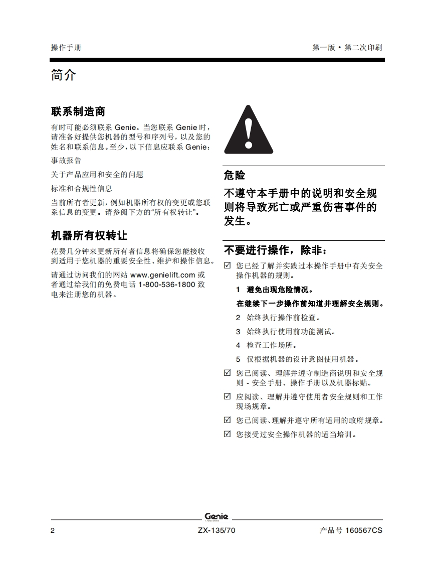 GENIE吉尼-序列号范围-X-135_70-ZX-13513-2001-之后曲臂吊高空作业平台操作说明书手册找手册网19小时前发布关注私信8.96MB71页030GENIE吉尼-序列号范围-X-135_70-ZX-13513-2001-之后曲臂吊高空作业平台操作说明书手册此内容为付费资源,请付费后查看¥19¥21黄金会员免费钻石会员免费立即购买您当前未登录!建议登陆后购买,可保存购买订单付费资源 第1页 / 共71页 第2页 / 共71页 第3页 / 共71页 第4页 / 共71页 第5页 / 共71页 第6页 / 共71页 第7页 / 共71页 第8页 / 共71页 第9页 / 共71页 第10页 / 共71页 试读已结束,还剩61页,您可下载完整版后进行离线阅读 THE ENDGENIE 文本预览 GenieA TEREX BRAND操作手册序列号范围ZX-135/70ZX-13513-2001之后ANSI/CSANorth AmericaSouth AmericaAsia带有维修信息First EditionSecond PrintingPart No.160567CS 查看更多 收起部分 喜欢就支持一下吧收藏