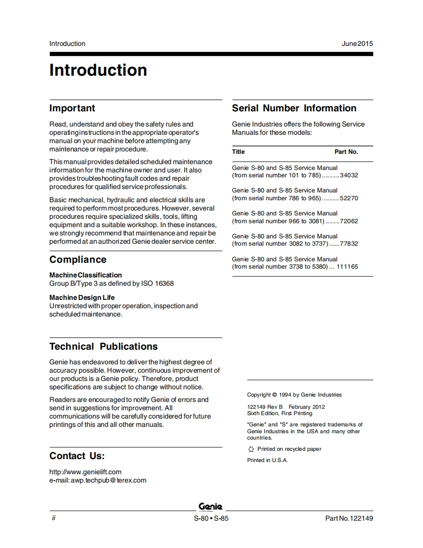 吉尼GENIE-GS80_Service_Manual维修保养手册找手册网19小时前发布关注私信2.74MB253页050吉尼GENIE-GS80_Service_Manual维修保养手册此内容为付费资源,请付费后查看¥19¥21黄金会员免费钻石会员免费立即购买您当前未登录!建议登陆后购买,可保存购买订单付费资源 第1页 / 共253页 第2页 / 共253页 第3页 / 共253页 第4页 / 共253页 第5页 / 共253页 第6页 / 共253页 第7页 / 共253页 第8页 / 共253页 第9页 / 共253页 第10页 / 共253页 试读已结束,还剩243页,您可下载完整版后进行离线阅读 THE ENDGENIE 文本预览 GenieA TEREX BRANDService ManualSerial Number RangeS80fr0ms8007-5381tos8008-7999S85Part No.122149Rev B1June 2015 查看更多 收起部分 喜欢就支持一下吧收藏