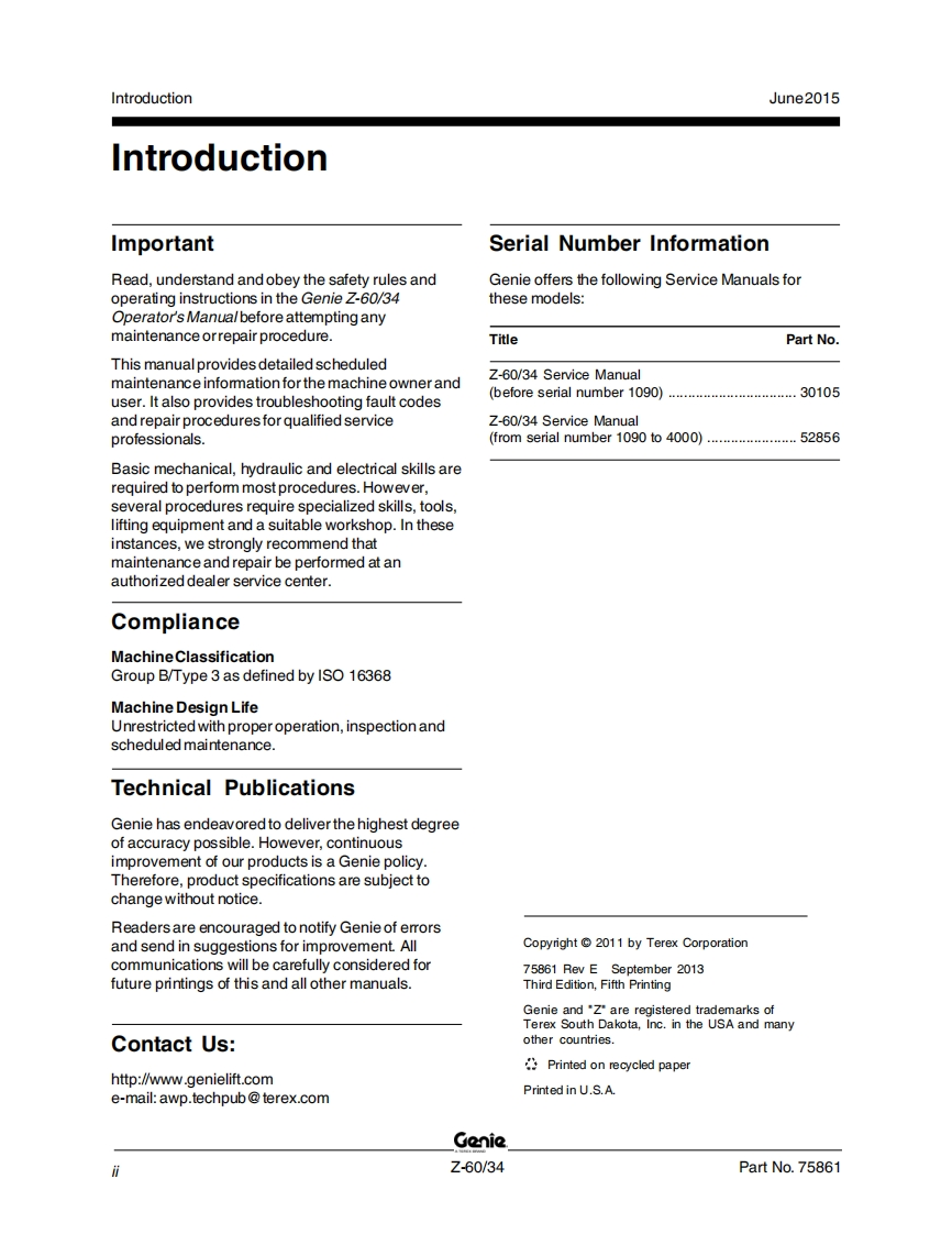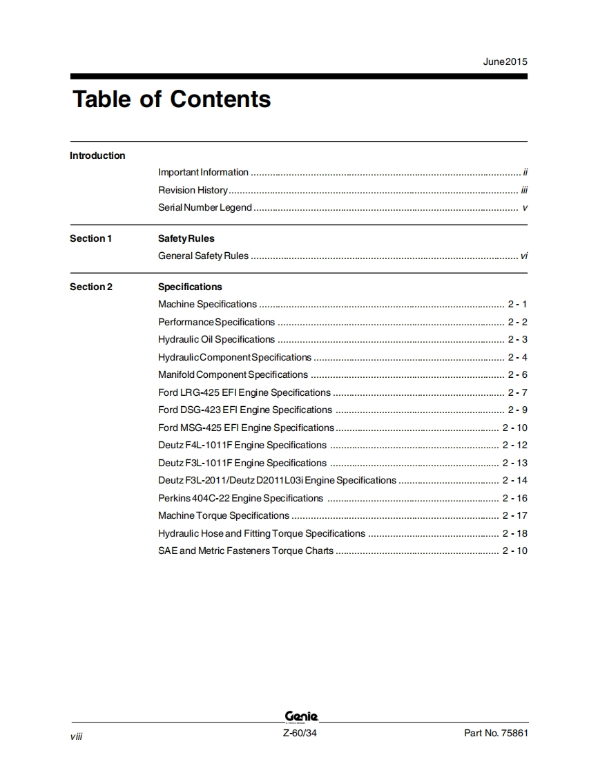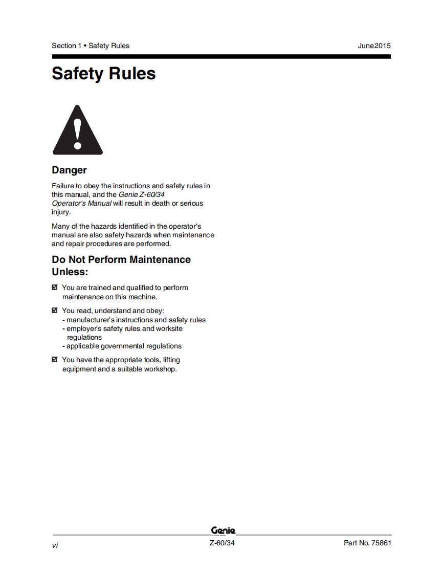 吉尼Genie-Z-60-34-Service-Manual维修保养说明书手册找手册网19小时前发布关注私信5.83MB341页044吉尼Genie-Z-60-34-Service-Manual维修保养说明书手册此内容为付费资源,请付费后查看¥19¥21黄金会员免费钻石会员免费立即购买您当前未登录!建议登陆后购买,可保存购买订单付费资源 第1页 / 共341页 第2页 / 共341页 第3页 / 共341页 第4页 / 共341页 第5页 / 共341页 第6页 / 共341页 第7页 / 共341页 第8页 / 共341页 第9页 / 共341页 第10页 / 共341页 试读已结束,还剩331页,您可下载完整版后进行离线阅读 THE ENDGENIE 文本预览 GenieA TEREX BRANDService ManualSerial Number RangeZ60/34from Z60-4001Part No.75861Rev E2June 2015 查看更多 收起部分 喜欢就支持一下吧收藏
