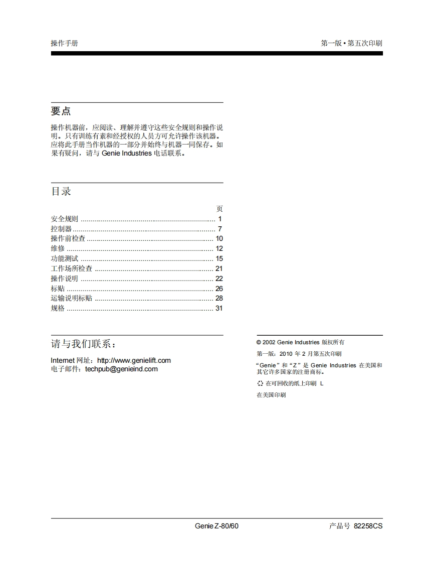 吉尼GENIE-操作手册-及维修信息-Z-80_60-在-207-之前曲臂吊高空作业平台操作说明书手册找手册网19小时前发布关注私信1.38MB35页045吉尼GENIE-操作手册-及维修信息-Z-80_60-在-207-之前曲臂吊高空作业平台操作说明书手册此内容为付费资源,请付费后查看¥19¥21黄金会员免费钻石会员免费立即购买您当前未登录!建议登陆后购买,可保存购买订单付费资源 第1页 / 共35页 第2页 / 共35页 第3页 / 共35页 第4页 / 共35页 第5页 / 共35页 第6页 / 共35页 第7页 / 共35页 第8页 / 共35页 第9页 / 共35页 第10页 / 共35页 试读已结束,还剩25页,您可下载完整版后进行离线阅读 THE ENDGENIE 文本预览 Gonie操作手册First EditionFifth Printing及维修信息Part No.82258CSZ-80/60在207之前刻 查看更多 收起部分 喜欢就支持一下吧收藏