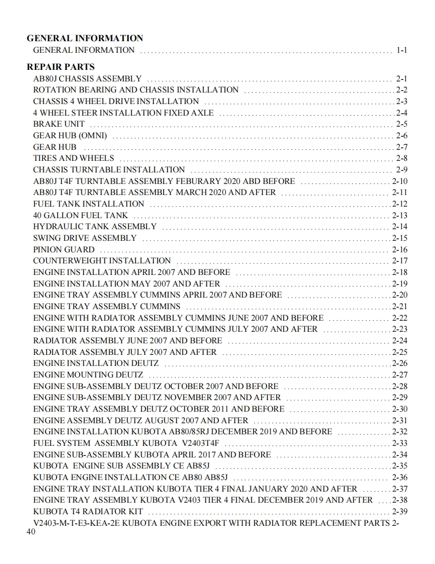 snorkel-ab80j维修与零部件说明书手册找手册网23小时前发布关注私信17.51MB588页029snorkel-ab80j维修与零部件说明书手册此内容为付费资源,请付费后查看¥19¥21黄金会员免费钻石会员免费立即购买您当前未登录!建议登陆后购买,可保存购买订单付费资源 第1页 / 共588页 第2页 / 共588页 第3页 / 共588页 第4页 / 共588页 第5页 / 共588页 第6页 / 共588页 第7页 / 共588页 第8页 / 共588页 第9页 / 共588页 第10页 / 共588页 试读已结束,还剩578页,您可下载完整版后进行离线阅读 THE ENDSNORKEL 文本预览 SsnorkelAB8OJSsnorkel ABBJDTC€REPAIR PARTSMANUALSerial number 000001 and afterPart Number 0421901November 2016Models AB80J/A80JReplaces 0420999 March 2014 查看更多 收起部分 喜欢就支持一下吧收藏