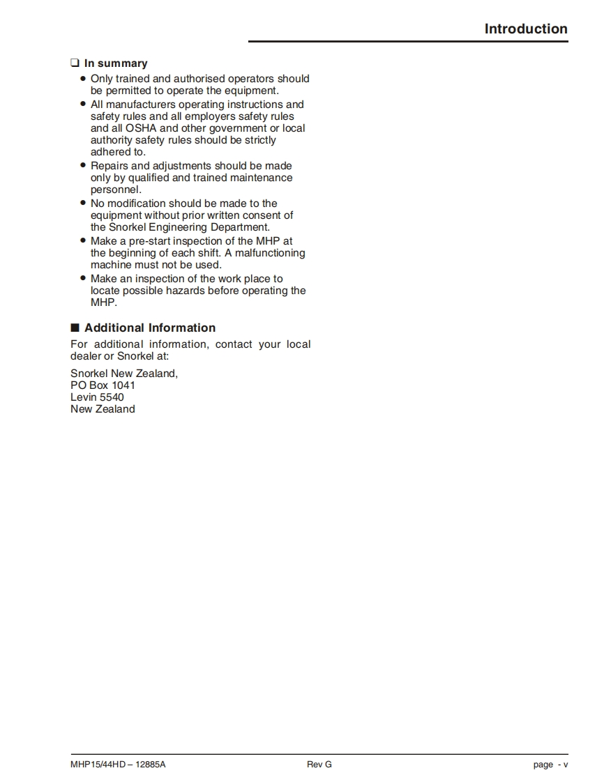 SNORKEL-MHP15HD操作与维修手册找手册网21小时前发布关注私信13.27MB107页051SNORKEL-MHP15HD操作与维修手册此内容为付费资源,请付费后查看¥19¥21黄金会员免费钻石会员免费立即购买您当前未登录!建议登陆后购买,可保存购买订单付费资源 第1页 / 共107页 第2页 / 共107页 第3页 / 共107页 第4页 / 共107页 第5页 / 共107页 第6页 / 共107页 第7页 / 共107页 第8页 / 共107页 第9页 / 共107页 第10页 / 共107页 试读已结束,还剩97页,您可下载完整版后进行离线阅读 THE ENDSNORKEL 文本预览 SnorkelNEW ZEALANDoperator'sManudlMHP4④HDEngine PoweredGasolineBattery ElectricPN12885AJuly 2009 Rev G 查看更多 收起部分 喜欢就支持一下吧收藏