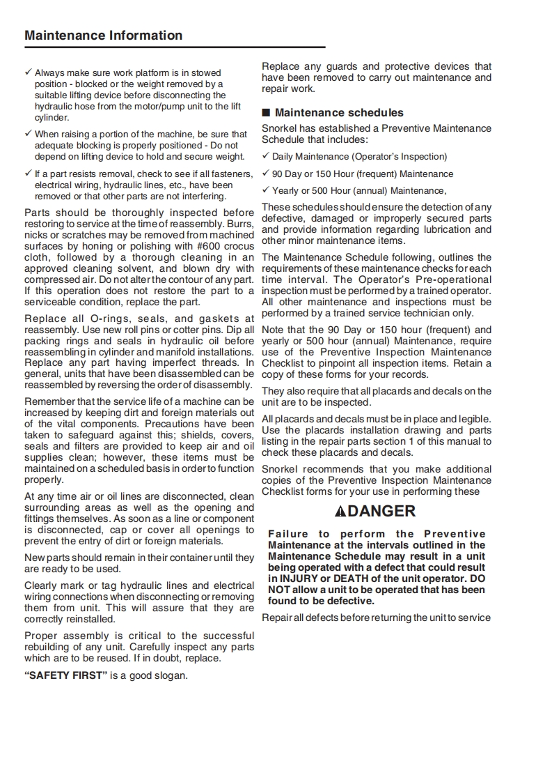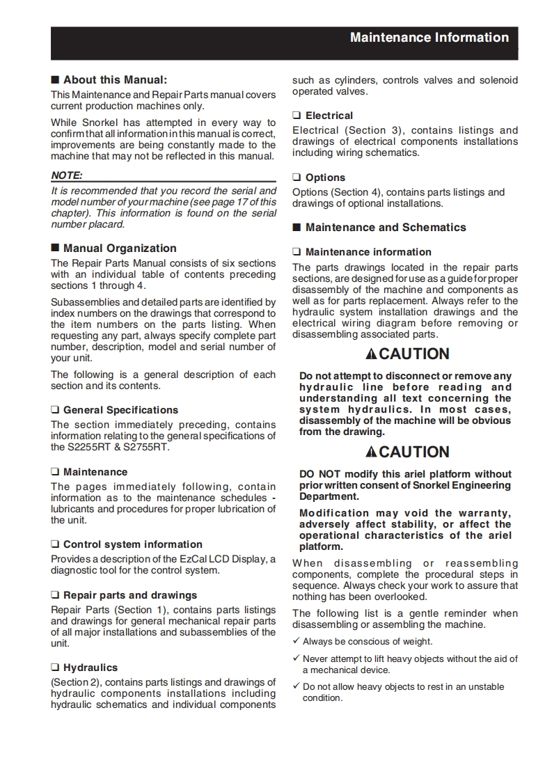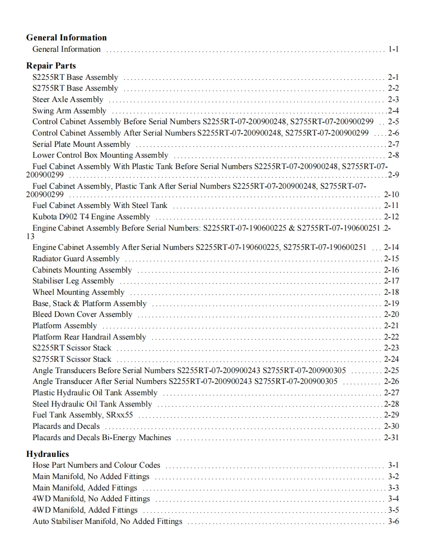 snorkel-s2255rt_s2255be_s2755rt_s2755be_ver_6维修与零部件说明书手册找手册网23小时前发布关注私信7.31MB167页040snorkel-s2255rt_s2255be_s2755rt_s2755be_ver_6维修与零部件说明书手册此内容为付费资源,请付费后查看¥19¥21黄金会员免费钻石会员免费立即购买您当前未登录!建议登陆后购买,可保存购买订单付费资源 第1页 / 共167页 第2页 / 共167页 第3页 / 共167页 第4页 / 共167页 第5页 / 共167页 第6页 / 共167页 第7页 / 共167页 第8页 / 共167页 第9页 / 共167页 第10页 / 共167页 试读已结束,还剩157页,您可下载完整版后进行离线阅读 THE ENDSNORKEL 文本预览 SsnorkelS2755BES2255BES2755RTS2255RTgsnorkel www.snorkellifts.comSsnorkel。SsnorkelREPAIR PARTSMANUALFrom Serial Numbers:Part Number 15286-2S2255RT-07-190100208&April 2019(Rev A)S2755RT-07-180700201 OnwardsVersion 6 查看更多 收起部分 喜欢就支持一下吧收藏