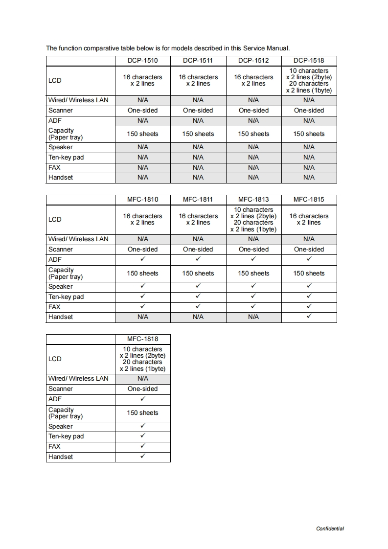 brother.Brother Laser MFCSERVICE MANUALMODEL:DCP-1510/1511/1512/1518MFC-1810/1811/1813/1815/1818sdssSRead this manual thoroughly before maintenance work.Keep this manual in a convenient place for quick and easy reference at all times.May 2013SM-FAX1468C5G*Confidential