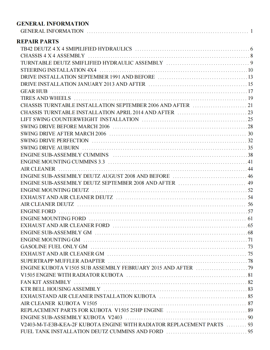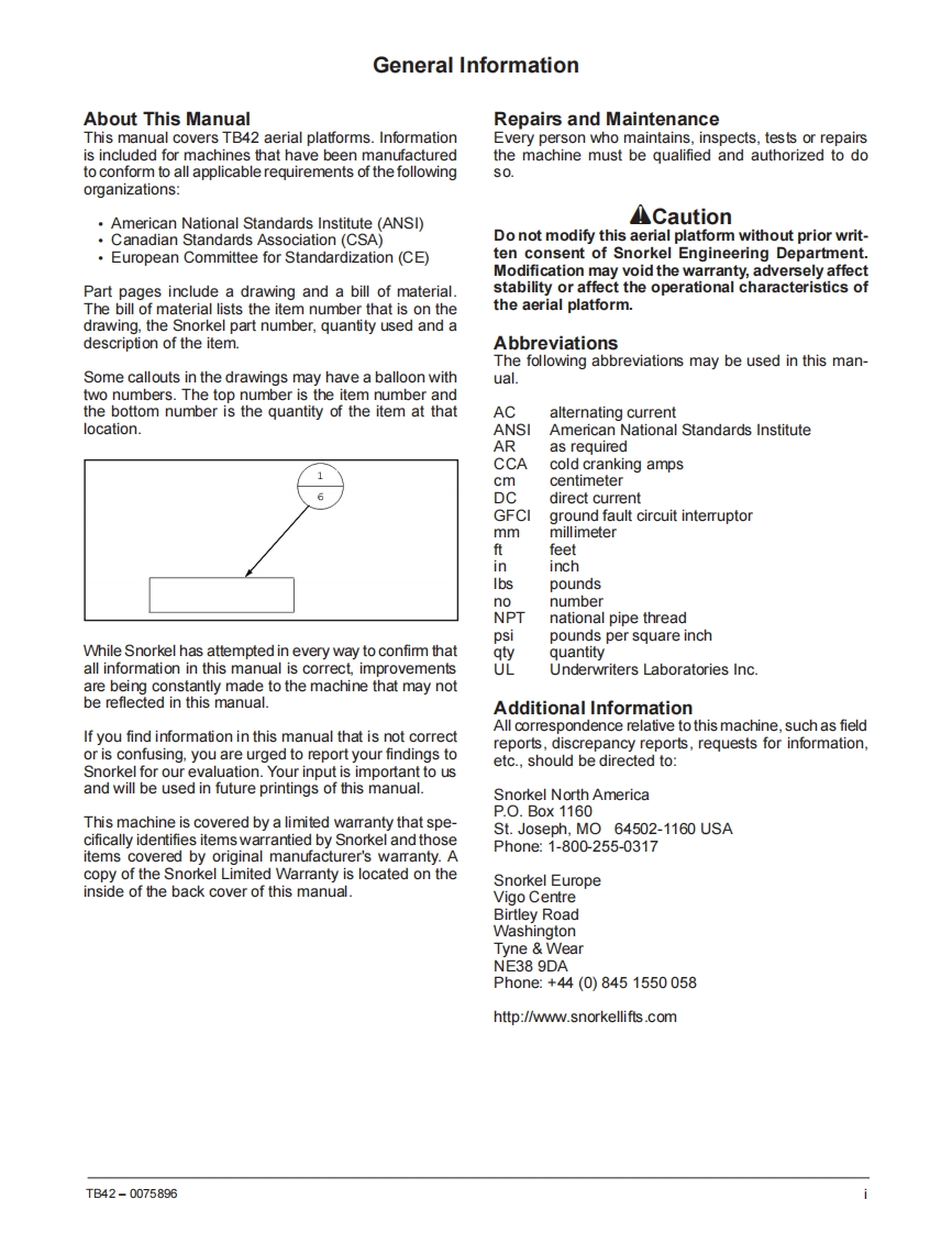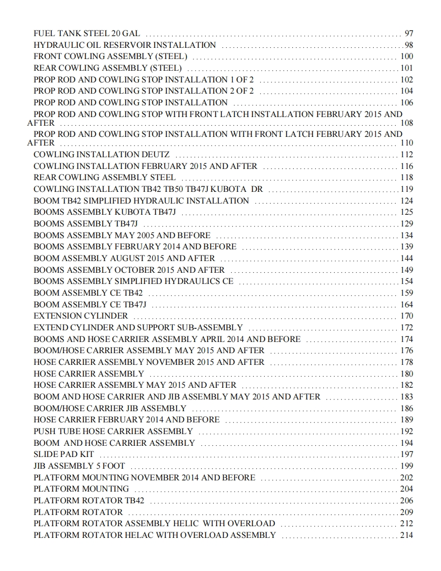 snorkel-tb42_tb50_tb47j维修与零部件说明书手册找手册网19小时前发布关注私信24.62MB721页045snorkel-tb42_tb50_tb47j维修与零部件说明书手册此内容为付费资源,请付费后查看¥19¥21黄金会员免费钻石会员免费立即购买您当前未登录!建议登陆后购买,可保存购买订单付费资源 第1页 / 共721页 第2页 / 共721页 第3页 / 共721页 第4页 / 共721页 第5页 / 共721页 第6页 / 共721页 第7页 / 共721页 第8页 / 共721页 第9页 / 共721页 第10页 / 共721页 试读已结束,还剩711页,您可下载完整版后进行离线阅读 THE ENDSNORKEL 文本预览 SsnorkelTB427BG5▣TB47Jnn等REPAIR PARTSManufactured 02-05 and afterMANUALWith Simplified HydraulicsPart Number 0075896November 2016Replaces 0075237 August 2014 查看更多 收起部分 喜欢就支持一下吧收藏