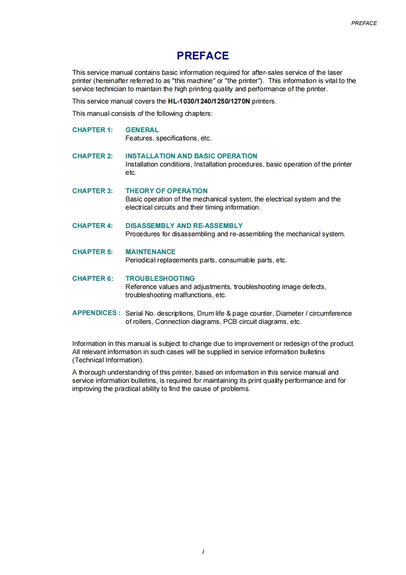 Brother-HL-1030—1240—1250—1270-维修手册-Manual找手册网30天前发布关注私信5.89MB224页050Brother-HL-1030—1240—1250—1270-维修手册-Manual此内容为付费资源,请付费后查看¥19¥21黄金会员免费钻石会员免费登录购买付费资源 第1页 / 共224页 第2页 / 共224页 第3页 / 共224页 第4页 / 共224页 第5页 / 共224页 第6页 / 共224页 第7页 / 共224页 第8页 / 共224页 第9页 / 共224页 第10页 / 共224页 试读已结束,还剩214页,您可下载完整版后进行离线阅读 THE END兄弟 文本预览 brother.Brother Laser PrinterSERVICE MANUALMODEL:HL-1030/1240/1250/1270NRead this manual thoroughly before maintenance work.Keep this manual in a convenient place for quick and easy reference at all times.September,1999SM-PRN001 查看更多 收起部分 喜欢就支持一下吧收藏
