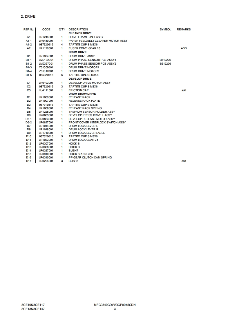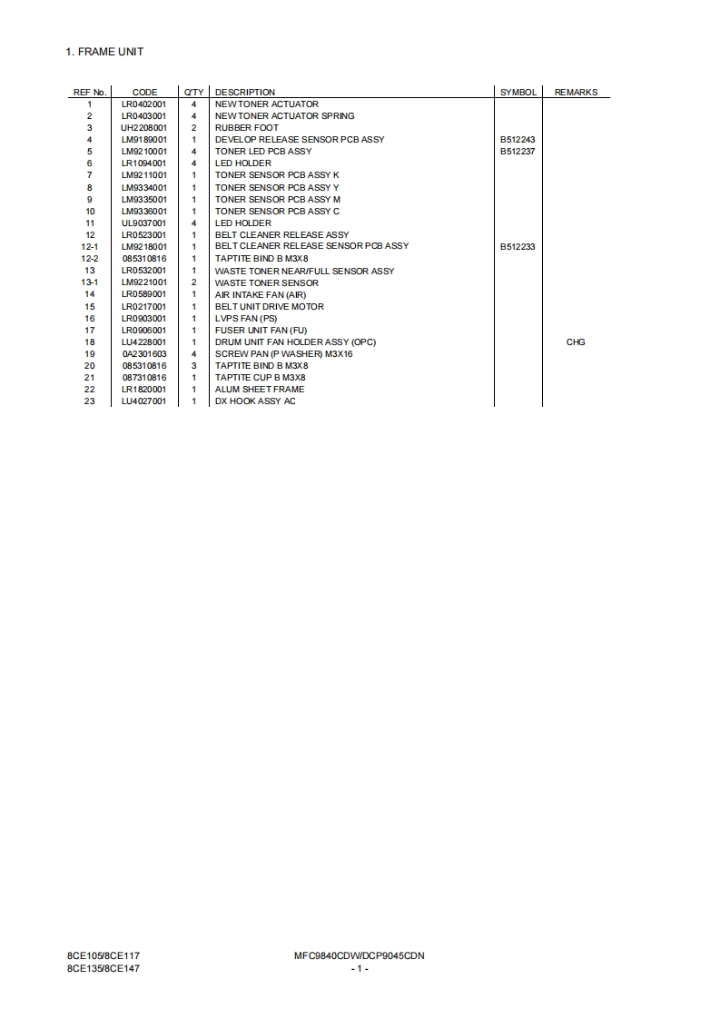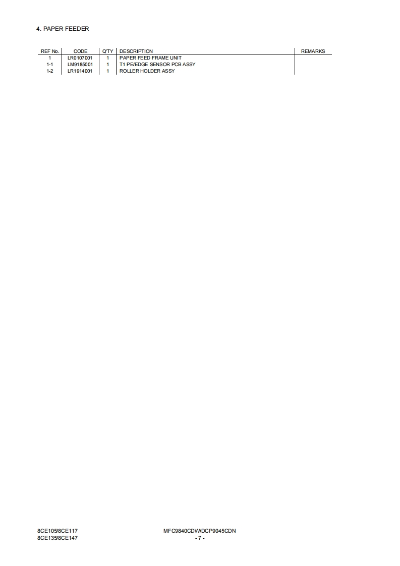 brother.Brother Facsimile EquipmentPARTS REFERENCE LISTMODEL:DCP-9045CDN/MFC-9840CDWRead this list thoroughly before maintenance work.Keep this list in a convenient place for quick and easy reference at all times.July 2007PL-FAX1458CE105Ver.AB-1