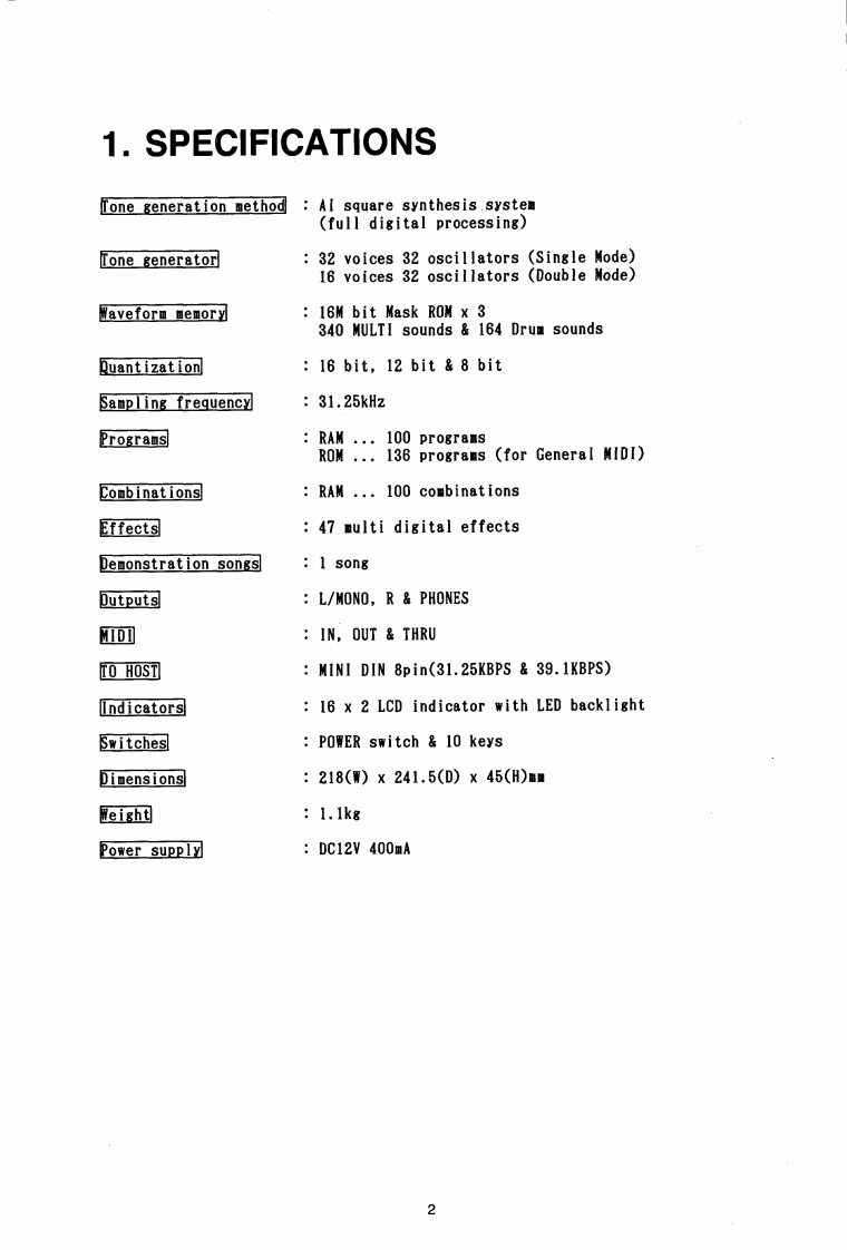 SERVICE MANUAL05R/WAI SYNTHESIS MODULECONTENTS1.SPECIFICATIONS22.STRUCTURAL DIAGRAM33.DlSASSEMBLY...........................44.BLOCK DIAGRAM….85.CIRCUIT DIAGRAM............9 and insertion6.P.C.BOARD............................107.DIAGNOSTIC TEST......................128.CHECK POINTS....229.REFERENCE DATA2510.PARTS LIST...9KORG