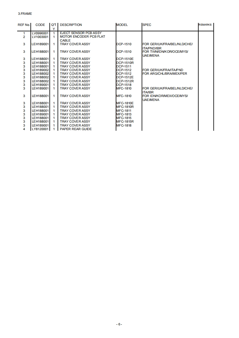 brotherLaser MFCPARTS REFERENCE LISTModels without fan:DCP-1510/1511/1512/1518MFC-1810/1811/1813/1815/18182822YRead this list thoroughly before maintenance work.Keep this list in a convenient place for quick and easy reference at all times.May 2013PL-FAX2068C5G*Ver.5