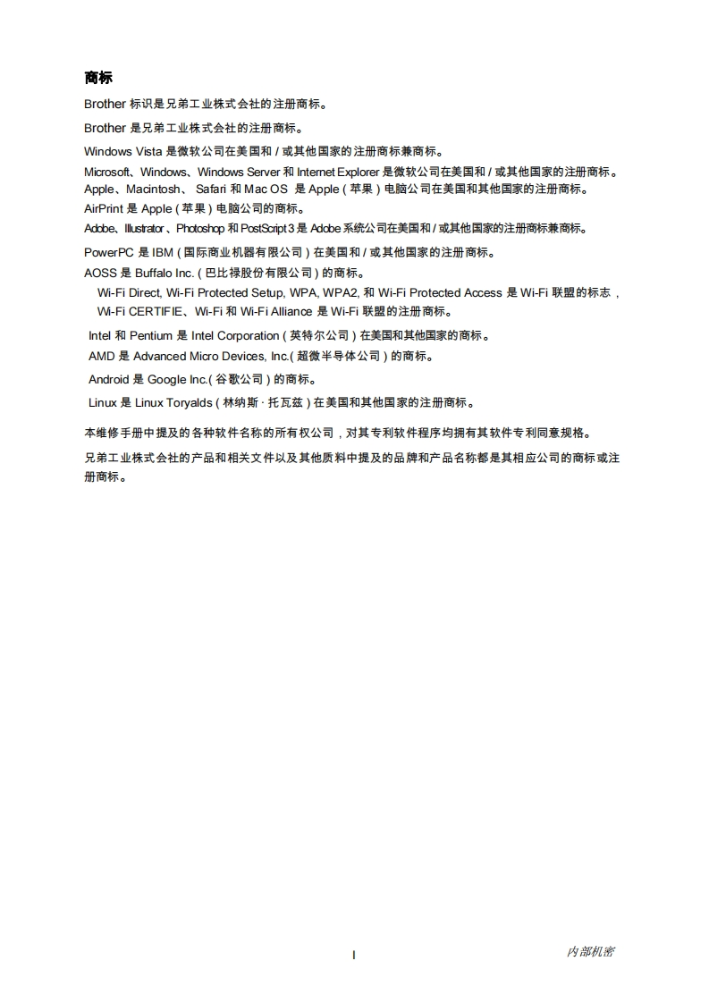 brother-at-your-side-Brother-彩色激光打印机-维修手册-机型-HL-3150CDN_3170CDW-维修前清仔细间诗木手,-A8找手册网30天前发布关注私信17.57MB277页029brother-at-your-side-Brother-彩色激光打印机-维修手册-机型-HL-3150CDN_3170CDW-维修前清仔细间诗木手,-A8此内容为付费资源,请付费后查看¥19¥21黄金会员免费钻石会员免费登录购买付费资源 第1页 / 共277页 第2页 / 共277页 第3页 / 共277页 第4页 / 共277页 第5页 / 共277页 第6页 / 共277页 第7页 / 共277页 第8页 / 共277页 第9页 / 共277页 第10页 / 共277页 试读已结束,还剩267页,您可下载完整版后进行离线阅读 THE END兄弟 文本预览 brother.at your sideBrother彩色激光打印机维修手册机型HL-3150CDN/3170CDW维修前请仔细阅读本手册。请将本手册放置在便利的地方以便于随时快速方便地予以参考。2013年3月SM-PRN09084E404内部机密 查看更多 收起部分 喜欢就支持一下吧收藏