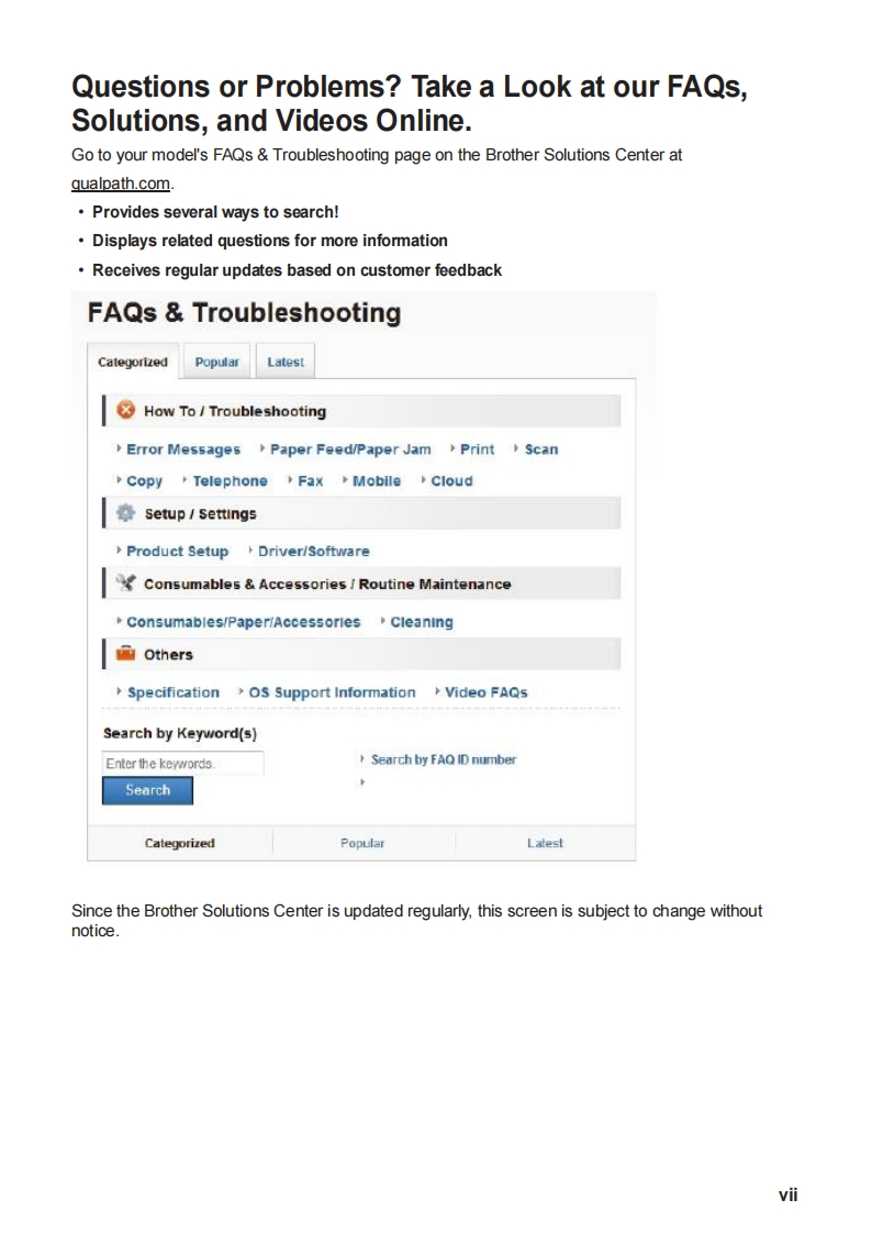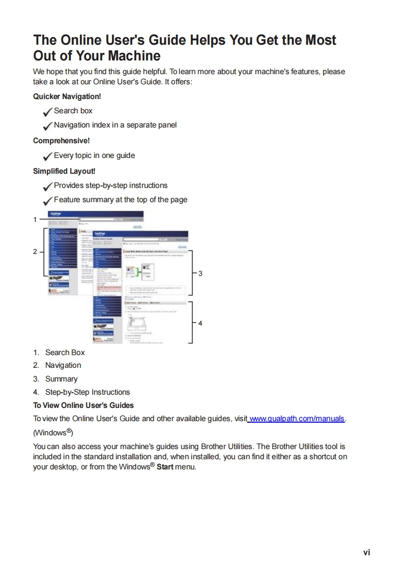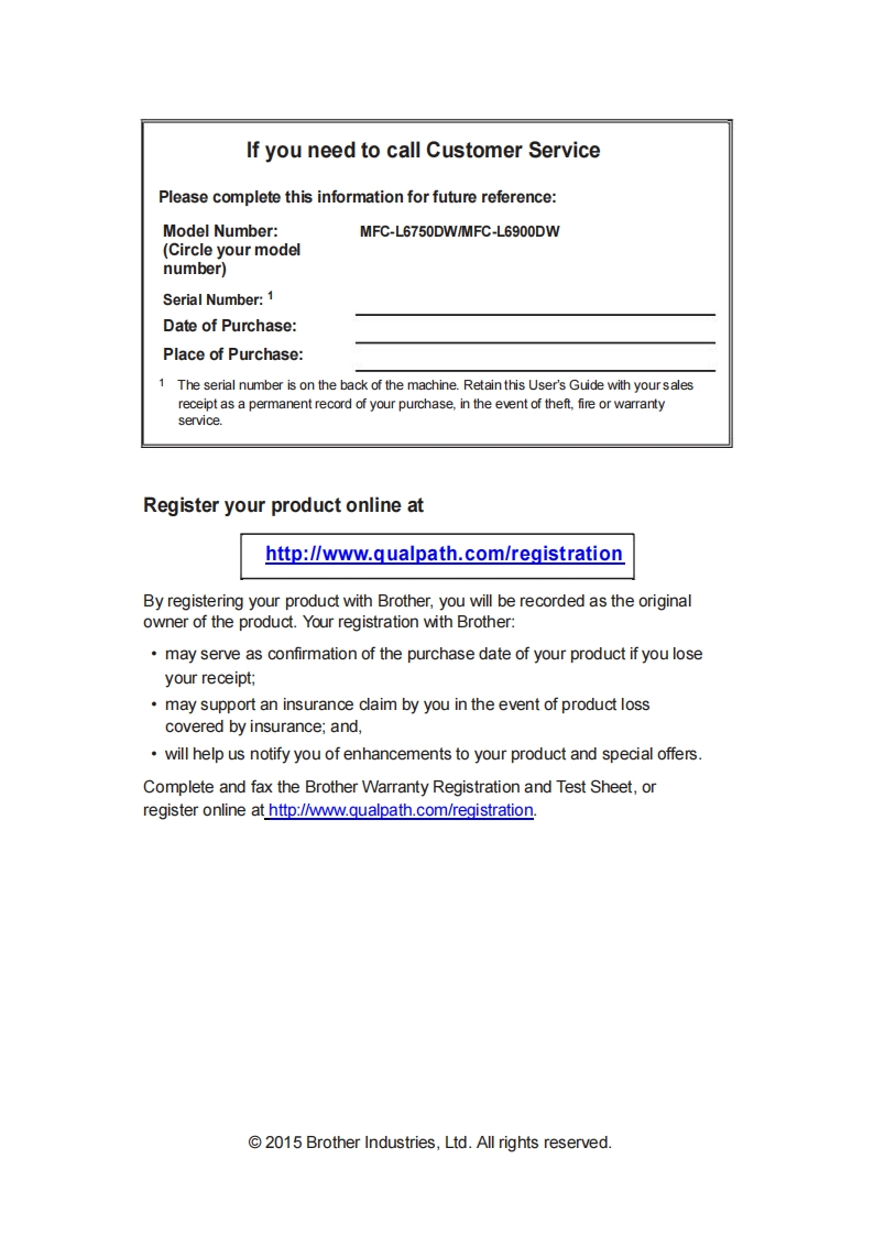 brotherBasic User's GuideMFC-L6750DWMFC-L6900DWBrother recommends keeping this guide next to your Brother machine for quick reference.Online User's GuideThis Basic User's Guide contains basicinstructions and information for your Brothermachine.For more advanced instructions and information.see the Online User's Guide atwww.qualpath.com/support