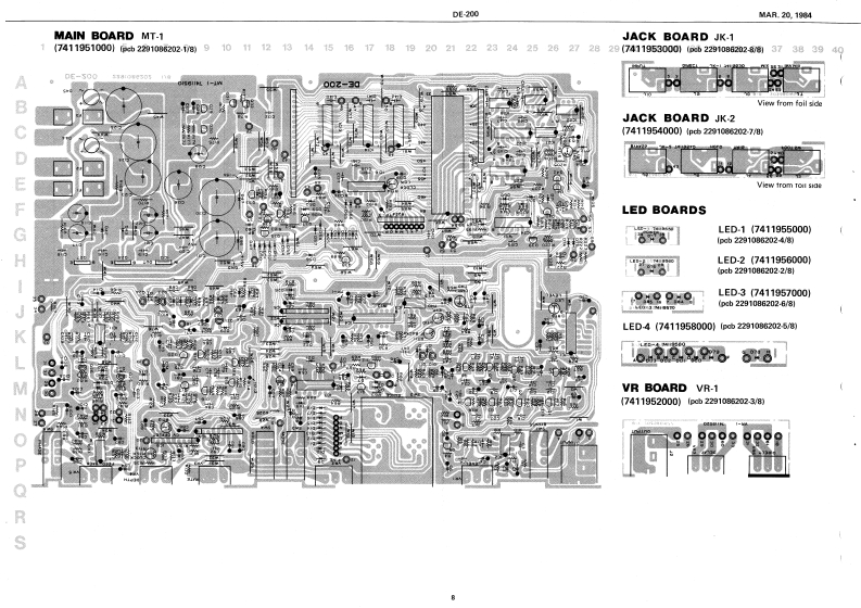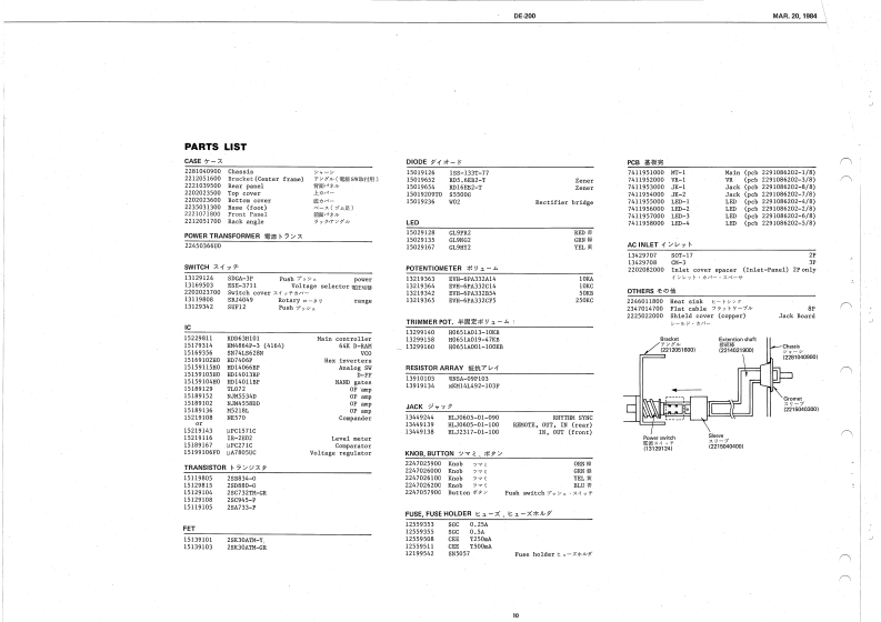 MAR.20.1984DE200迈E▣S50E-200REAR VIEWSERVICE NOTESFirst EditionAC Iniet9一全w比又2P134297070T171222103930013P(1342070间1W7DH Fe ncSPECIFICATIONS-Cr力4=内剪7,+M170202a02沙nyIrrpecance:1M OhrtsOutput ..................Rrted:-20dBm ims 10k OhmsDyraric Rarge-Dr:1108Dday:80dBHarmanic.........Dre0:0.0660rTmt.12ms-40T6形M0四X120mw-1230Ts导M00EX2Fe0 cy Responu,::.Drs可:1g2-100k地+05.-3B成力心=Dy:I-10:+5-3●N00E1122020239001CH:-4.5kHr +0.5,-348 MODE X2章年奶替天《学季Dimentina-42W×44H)x240D)mmE8E31113168话03)3成如y多HL0G0G01-10019x1-34Hx71801nHL00501-0O134491390中t35g/7h11028状风一入〔5起】22020300到2235001320114-48244FRONT VIEWDI5A答MILYAl the other LEDs are GLBPR2 1150291281 REDLED (GRN)毛②他7LED片GL9PR21502928150L9N02102013519-w上T00C0w上r415mFront ParalLED IYELI黄122020230w前图写宋环ol.Fe BCGL9HY2115029187122210718004 x BH Fe nc1..x9年9HL231701100(3649386.-.Kneb801±青2247m26200ot.米14-+EVH8PA332CF5250KCI1321936502.:1m球◆2224705900间9ahMx4+8UF.121312a3420P.本9--4EVH60A332B5450KB13218423.-.Kn阳b0洲My学(慢224702600P0L¥号.-4EVH8A137A1410KA1172I97G08.,Knob (YEL722402100)P1.米1.-4EV4GPA3320410KC[1J2I3341004..Kab0代N03学8是220020808Mh×千学卡8R049|13119回雨9..8uny22405300Power Suaich置0又4,手SDG4-3P113129124)05.-.Krab0ry7子解22402880eL卡U4-山EVH6P433285A0KI11171934010..月t7九2212061700RolandPrinted in Japan nE2
