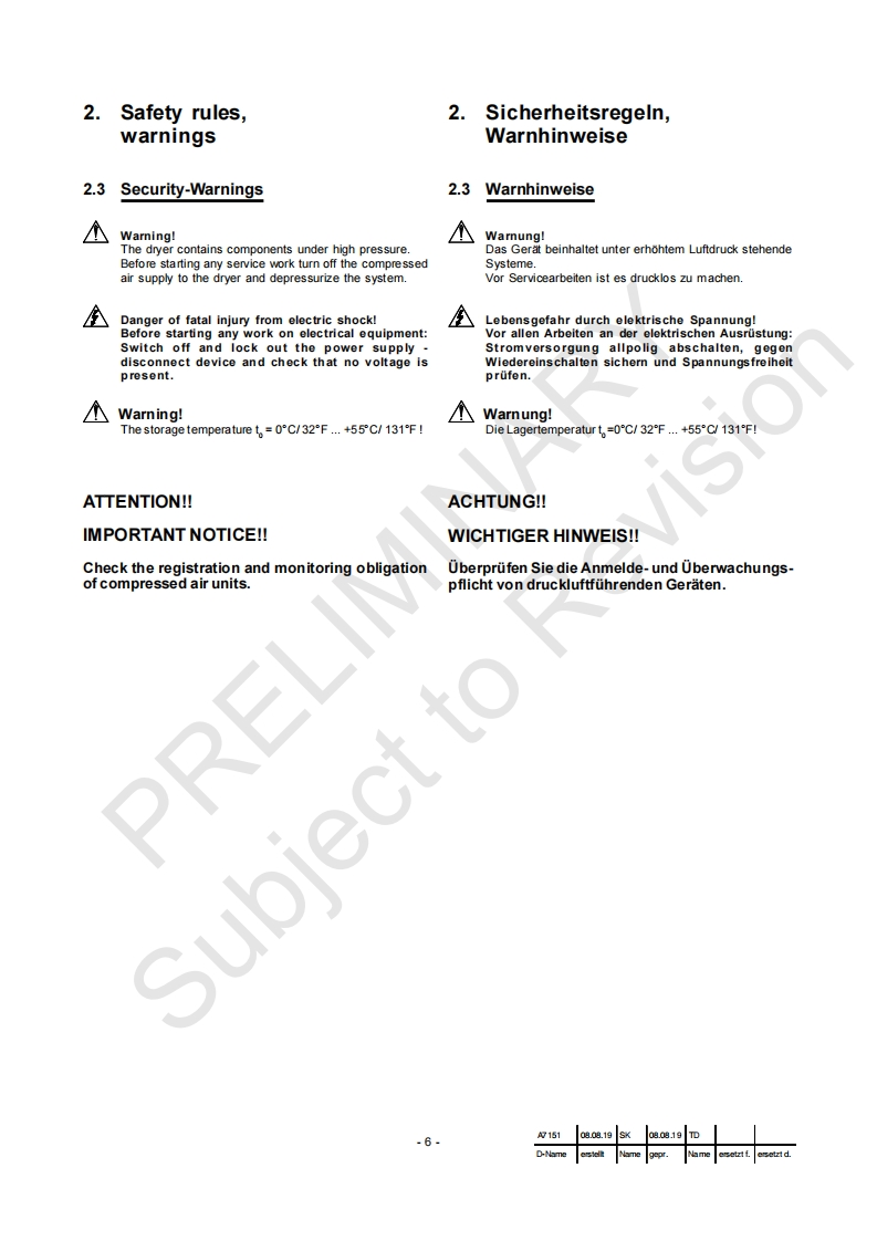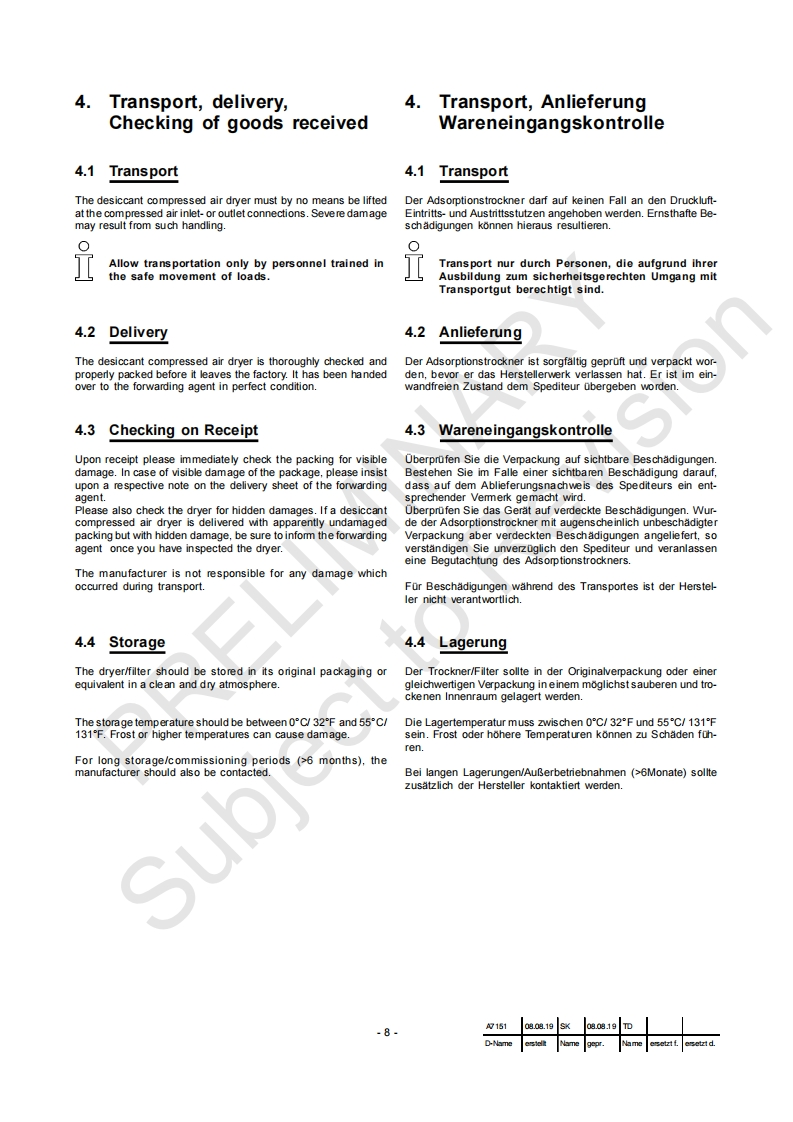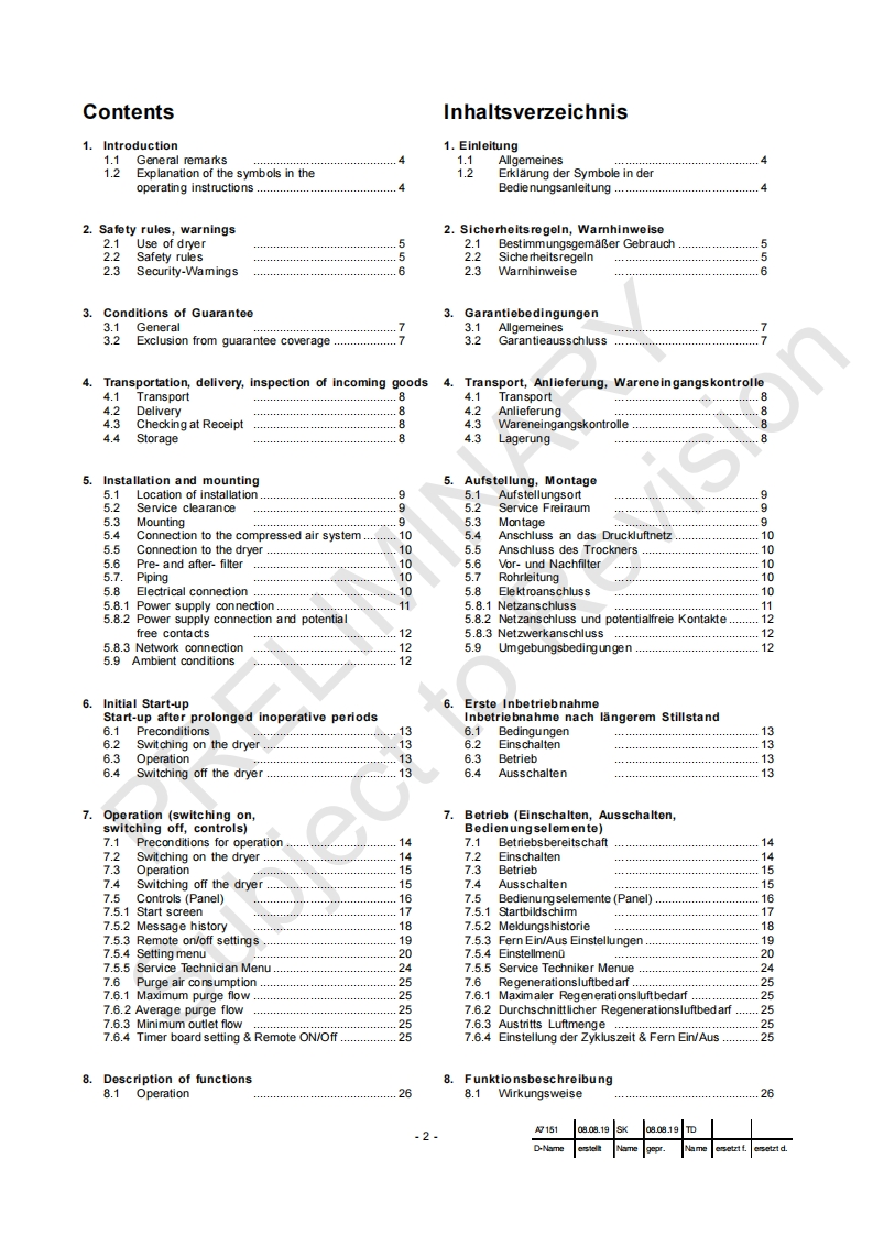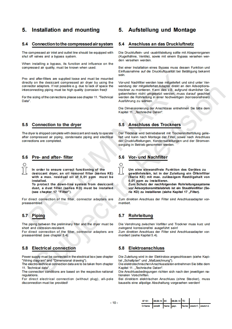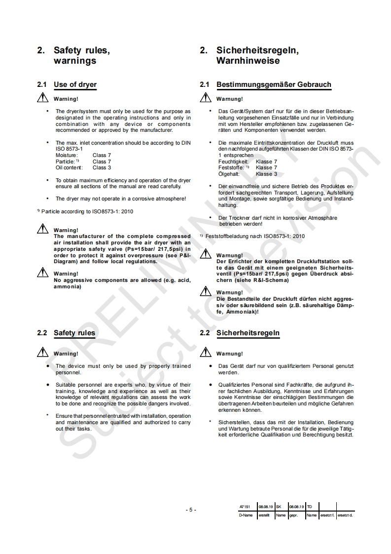 Instruction ManualBetriebsanleitungDesiccant Compressed Air Dryer/AdsorptionstrocknerPRELIMINARYSubject to RevisionDC2.0-DC11.3(HF)KAESERKOMPRESSOREN96410 Coburg·P0Box2143·GERMANY·Tel.-49-(0)9561-6400·Fax+49-(0)9561-640130http://www.kaeser.com1goltig ab 2020g15108.08.19 SK 08.08.19TDUSED-Name astelk Name gepr.Name asetzt f.aretzt d.A7151 01 USE D