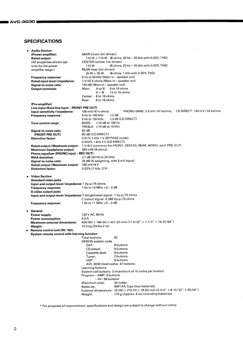 3DENONAV Surround AmplifierSERVICE MANUALMODEL AVC.3▣3OAV SURROUND AMPLIFIER000CONTENTSOPERATING INSTRUCTIONS……2-28DISASSEMBLY2ADJUSTMENTSEMICONDUCT0RS...........................31-37PRINTED WIRING BOARD38-42PRINTED WIRING BOARD PARTS LIST42-WIRINGDIAGRAM ......................................................................50SCHEMATIC DIAGRAM.51-5BLOCK DIAGRAM55EXPLODED VIEW OF CHASSIS AND CABINETPARTS LIST OF EXPLODED VIEW5REMOTE CONTROL UNIT…58-60SCHEMATIC DIAGRAM...............................................................5EXPLODED VIEWPARTS LIST60KEY LAYOUTNIPPON COLUMBIA CO..LTD.