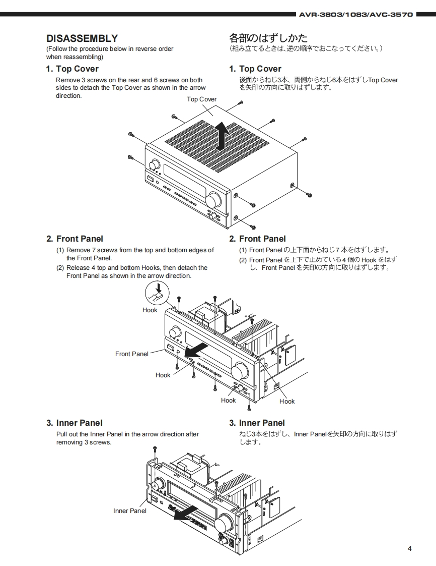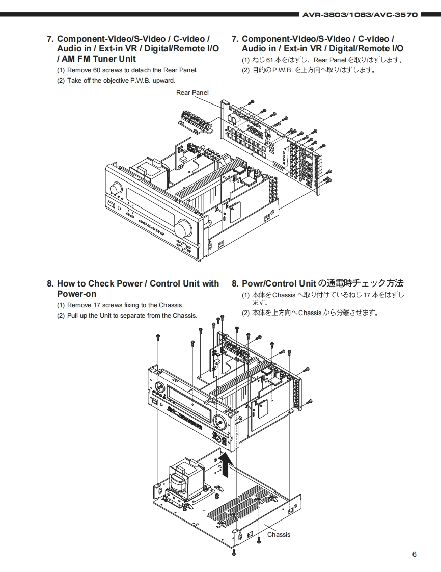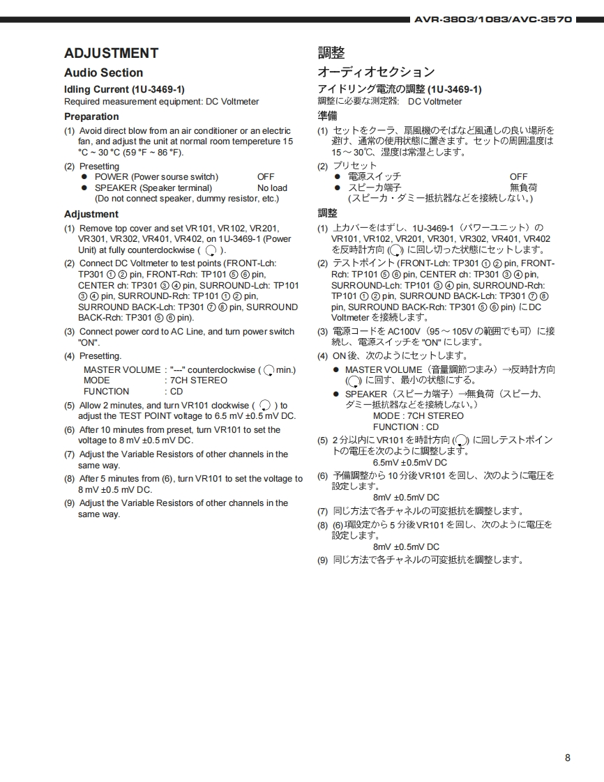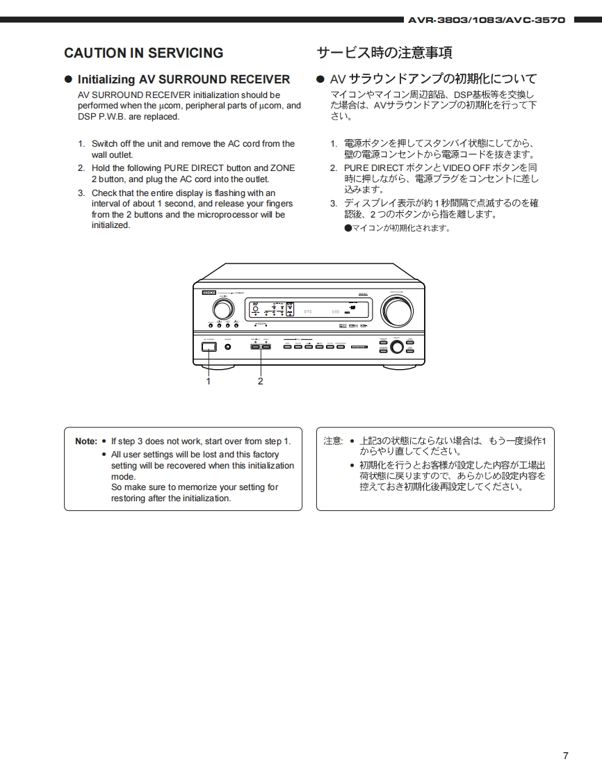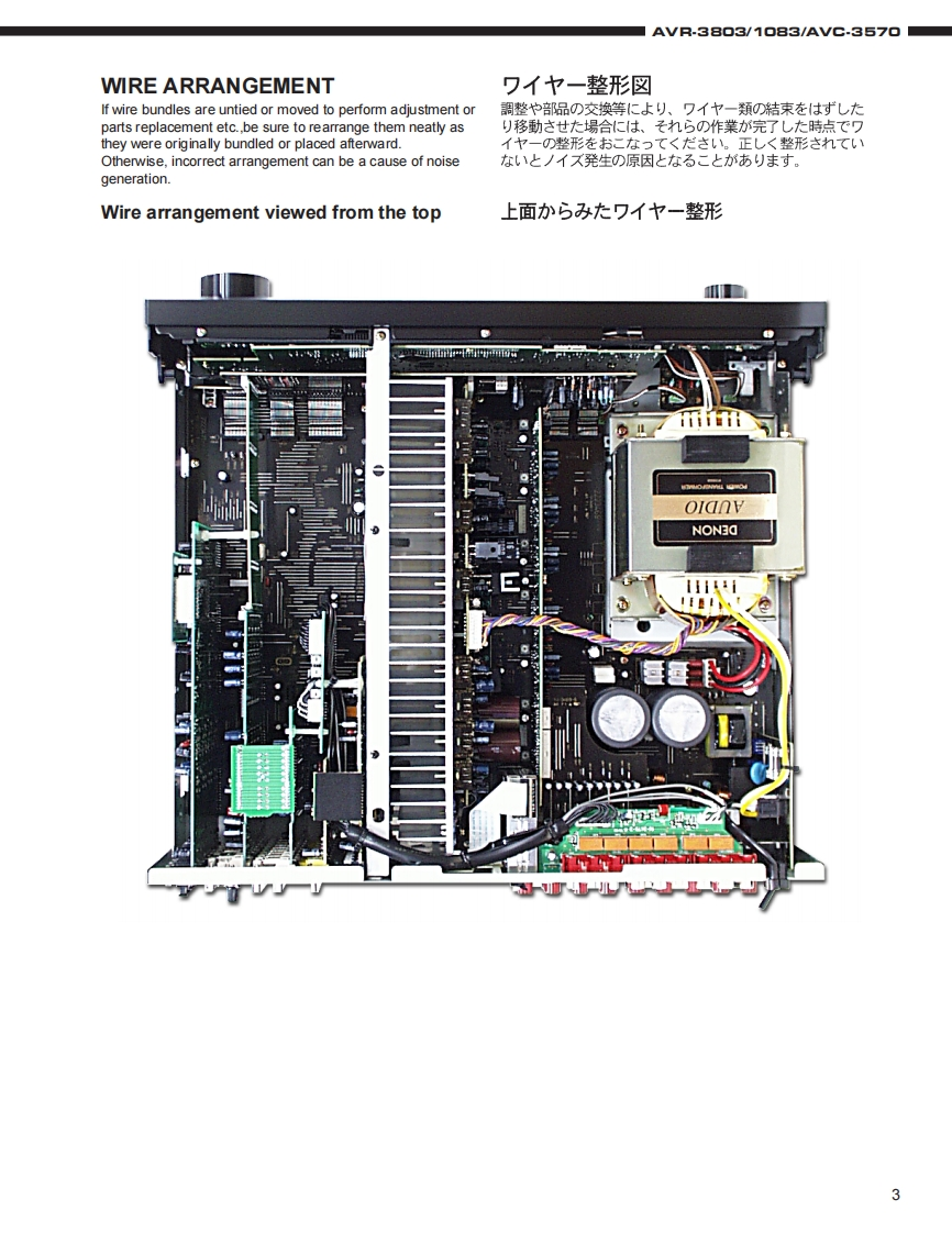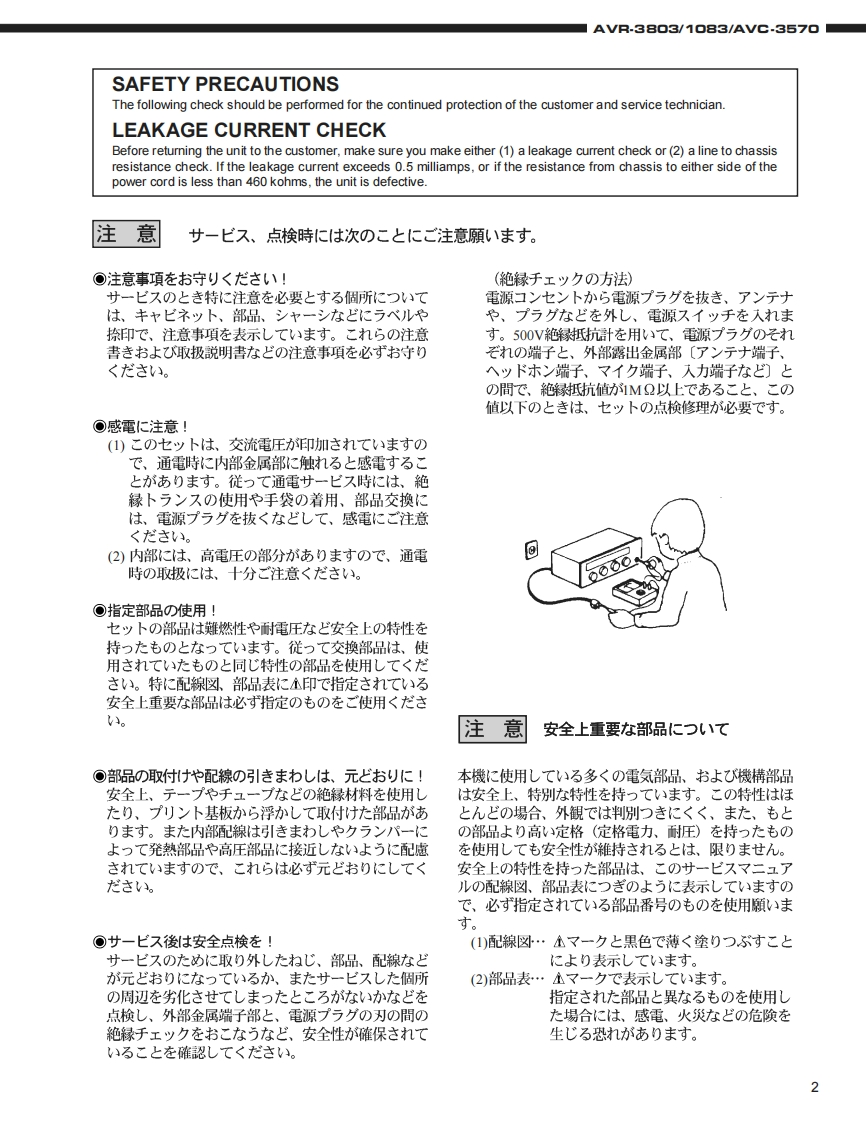 DENONFor U.S.A.,Canada,Europe,Asia,China,Hong Kong,Taiwan R.O.C.,Korea Japan modelSERVICE MANUALMODEL AVR.38▣3/M▣8EAVG.357▣AV SURROUND RECEIVER/AMPLIFIER圓9.回6665s起和合后吕占台口208白后名白台口名08AVR-3803AVC-3570注意少一上又在书汇友前、二)少一上又マ二ュ了儿在必式书読品<龙老(。本機志、火災、感電、付友仁对封石安全性苍確保寸石大的仁、ě夫苍ま在配慮苍二在一文书)、ま大法的仁体「電氨用品安全法」已屯上老、所定)許可苍得℃製造老九℃书)ま寸。徒℃少一上入苍书C友際慰、二九6①安全性雒持ě九石女方、二①少一上入マ二ュ了儿記載老九℃1注意事項在必寸书守)<龙ě(。本機)仕樣性能政良)大的、予告在<变更寸石二上水扬)未寸。●辅修用性能部品)保有期間、製造打切後8年C寸。Some illustrations using in this service manual are本文中仁使用L℃(1石才ラ又卜仗,脱明の都哈上現物slightly different from the actual set.之多少異:石場合州莎)法寸。DENON.Ltd.16-11.YUSHIMA 3-CHOME.BUNKYOU-KU.TOKYO 113-0034 JAPANTelephone:03(3837)5321X0155N@0211
