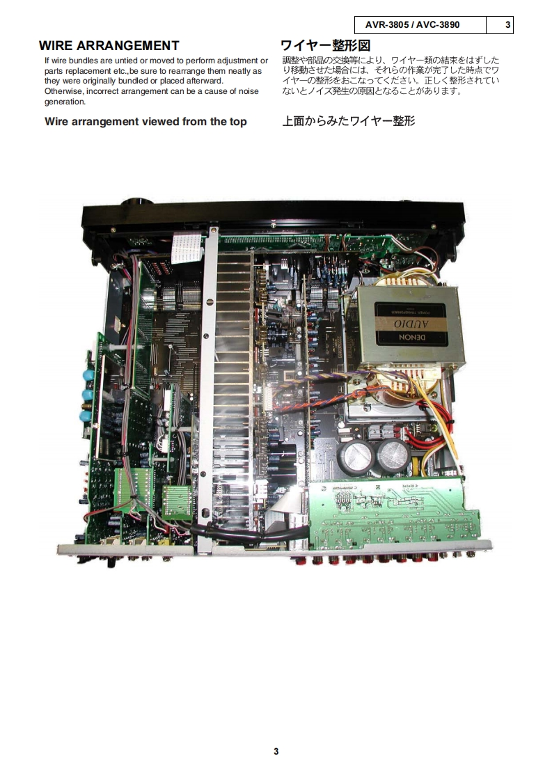 DENONFor U.S.A.Canada modelSERVICE MANUALMODEL AVR-3805AVC-3890AV SURROUND RECEIVER AMPLIFIER注意圹一上又在方乙春前忙、乙0片一上又又二1了儿在必寸蔬〈龙志。本機:、火災、感電、付扩春亿对村石安全性苍確保寸石:忙、古去芝去存配康在方乙存一(方以、求左法的体「電氨用品安全法屯上老、所定)許可卷得(製造志九()丰寸。徙)(圹一上又卷乙存際体、乙九5)安全性扩摊持这九石太、乙)片一上又又二ュ了記载达九乙石注意事項在必寸訪守)〈龙过。For purposes of improvement,specifications and●本機)仕樣:性能改良)左协、予告存〈变更寸石design are subject to change without notice.乙上扩)未寸。●補修用性能部品)保有期間太、製造打切後8年下寸。Please use this service manual with referring to the●修理)際休、必寸取极說明書在参照)上、作業卷operating instructions without fail.行ヮ(〈龙。Some illustrations using in this service manual are●本文中(使用L乙不ラ又卜.、說明)都合上slightly different from the actual set.現物上多少異左石場合扩杨)未寸。DENON.Ltd.16-11.YUSHIMA 3-CHOME,BUNKYO-KU.TOKYO 113-0034 JAPANX0197V.02 DE/CDM0403