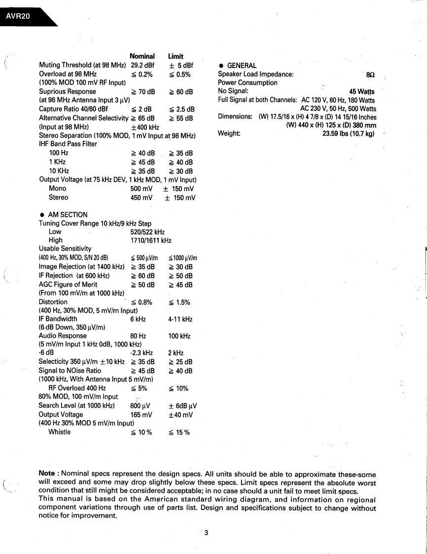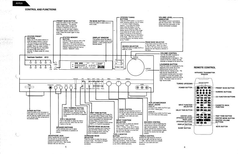 The Harman KardonModel AVR20Manual 188AAUDIO AND VIDEO RECEIVERTechnical Manualharman/kardonR着0⑧⑧002⑦⑧0gQ8=:00O■CONTENTS■SPECIFICATIONS…2GENERAL UNIT…6LEAKAGE TESTP.C.B0ARDS…8CONTROLS AND FUNCTIONSELECTRICAL PARTS LIST...........13DISASSEMBLY PROCEDURES...........4BL0CKD1 AGRAM…28ALIGNMENT PROCEDURES........4IC BLOCK DIAGRAMS29CIRCUIT DESCRIPTION ..........SCHEMATIC DIAGRAMS....................32GENERAL UNIT PARTS LIST...........6WIRING DIAGRAM..................42harman/kardonParts and Service Office240 Crossways Park West,Woodbury,N.Y.117971112-0330A152 G9212 1500 Printed in Korea