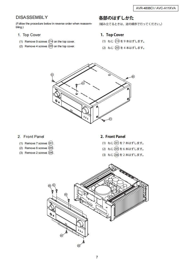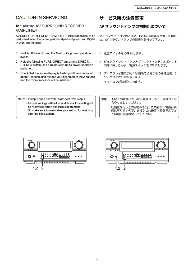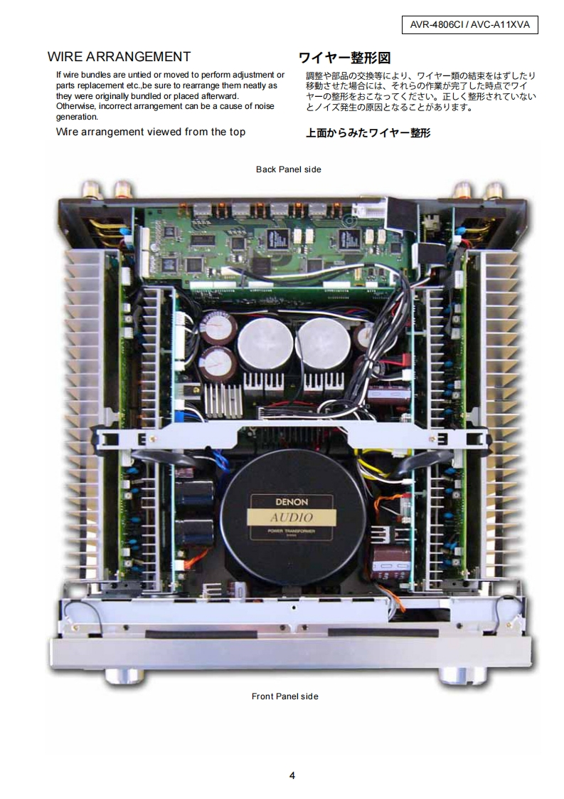 DENONFor U.S.A.,Canada,Europe modelSERVICE MANUALVer.1MODEL AVR-4806CAV SURROUND RECEIVERMODEL AVC-A11XVAAV SURROUND AMPLIFIER注意廿一七又在粘乙在)前忙、乙)廿一七又又二1了在必寸方蔬<龙过U。本機休、火災、感電、付存(仁对寸石安全性左確保寸石上忙、古未芒东存配虚苍乙存一乙訪、未左法的体「電氨用品安全法」屯上可老、所定)許可苍得(製造九(右)未寸。徙又力一上又卷右乙春際体、乙九5D安全性雜持老九石女、乙)廿一七又マ二ュ了儿記載志九乙小石注意事項在必寸方守少〈龙这。For purposes of improvement,specifications and●本機)仕横柱性能改良)龙协、予告在〈变更寸石乙上design are subject to change without notice.小态害寸。●補修用性能部品)保有期間:、製造打切後8年(寸。Please use this service manual with referring to the●修理)際:、必寸取极脱明苦左参照)上、作業卷行一operating instructions without fail.(〈龙丈。Some illustrations using in this service manual are·本文中忙使用L(石亻与又卜休、脱明)都合上現物slightly different from the actual set.上多少異在石場合扬)李寸。DENONTOKYO JAPANDenon Brand Company,D&M Holdings Inc.X0287V.01 DE/CDM0604