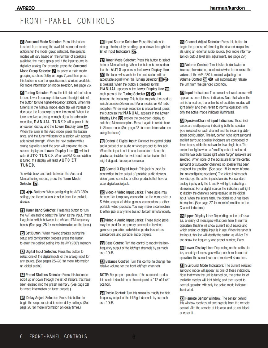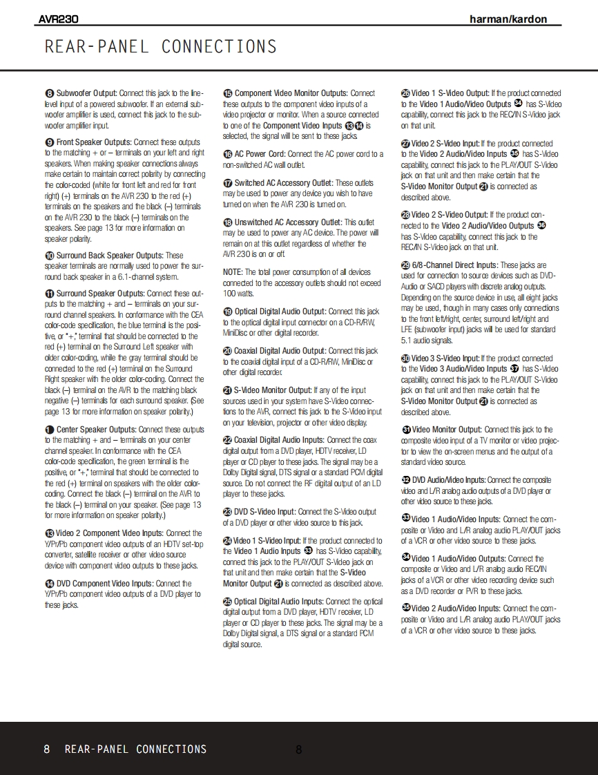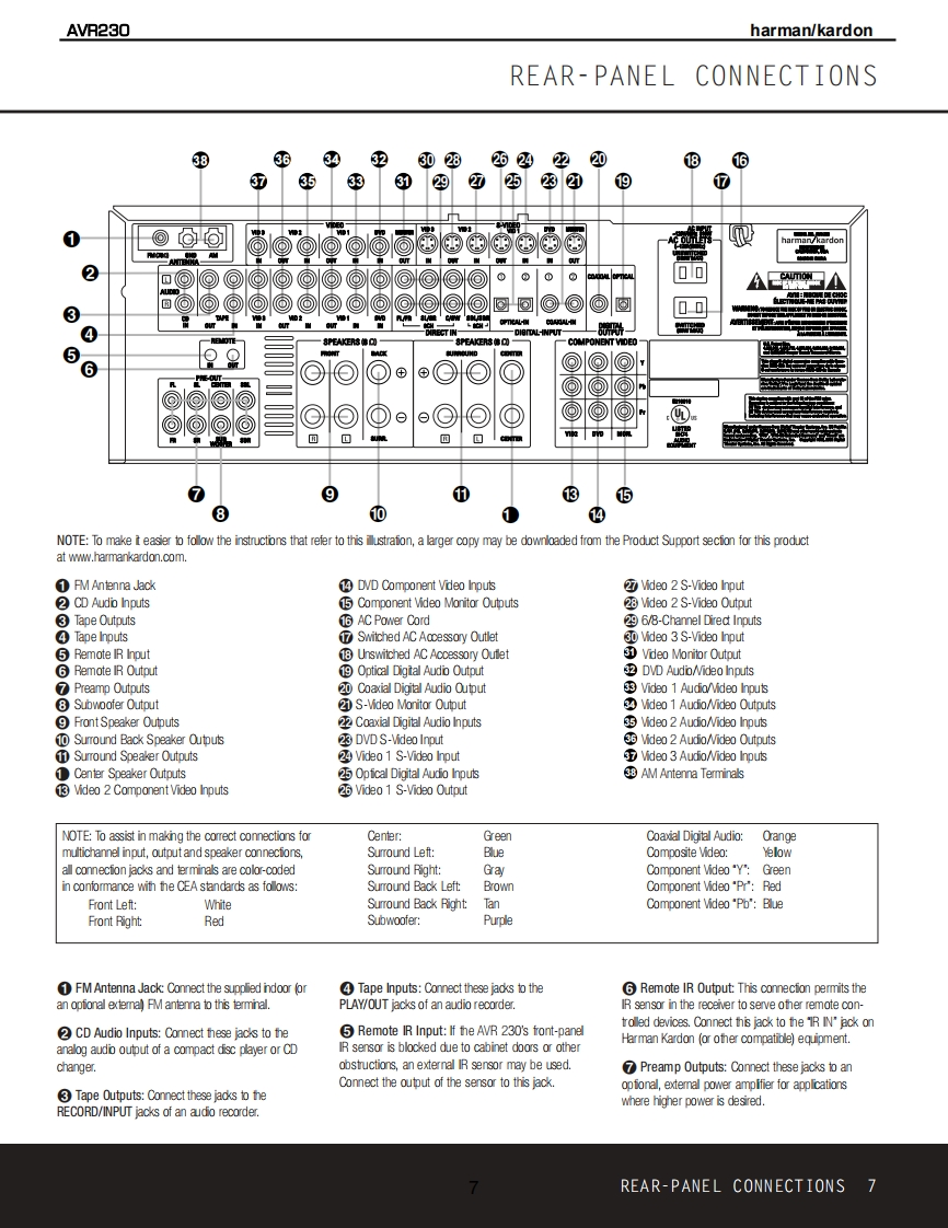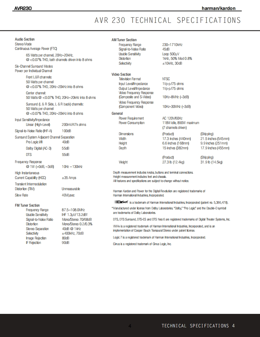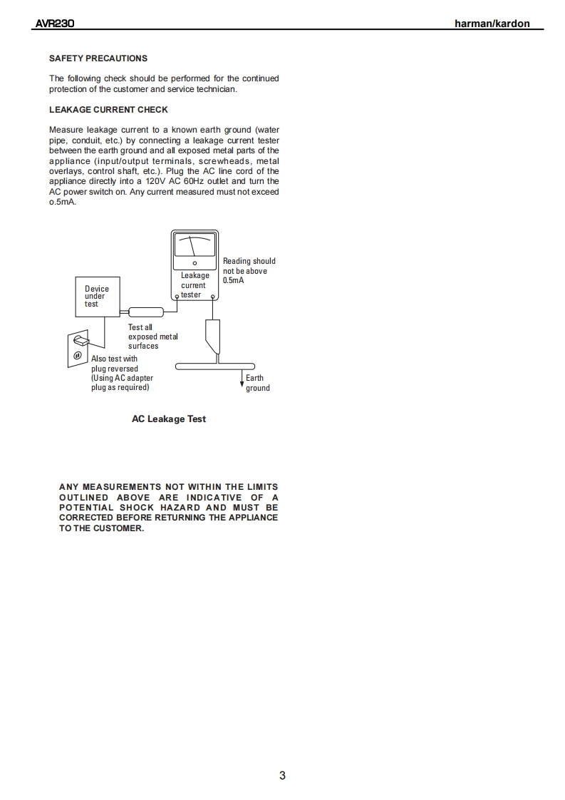 harman/kardonAVR2306 X 50W 5.1/7.1 CHANNEL A/RECEIVERSERVICE MANUALAVR 230DVD /COAX 1画DOLBY D EXa回ooog司harman/kardon⊙⊙0CONTENTSESD WARNING..........2TECH TIP HKTT2003-01................17LEAKAGE TESTING.3UNIT EXPLODED VIEW......................18BASIC SPECIFICATIONS.................4BLOCK DIAGRAM...........................19FRONT PANEL CONTROLS.....5AMP BIAS ADJUSTMENT.....................20REAR PANEL CONNECTIONS..7PCB DRAWINGS..........21REMOTE CONTROL FUNCTIONS..........10ELECTRICAL PARTS LIST..................27TROUBLESHOOTING GUIDE................13SEMICONDUCTOR PINOUTS...............63PROCESSOR RESET........................13SCHEMAT1CS..........104DISASSEMBLY....14WIRING DIAGRAM.........120BULLETIN HK2003-10..15PACKAGING.…121harman/kardon,Inc.250 Crossways Park Dr.Woodbury,New York 11797Rev111/2004