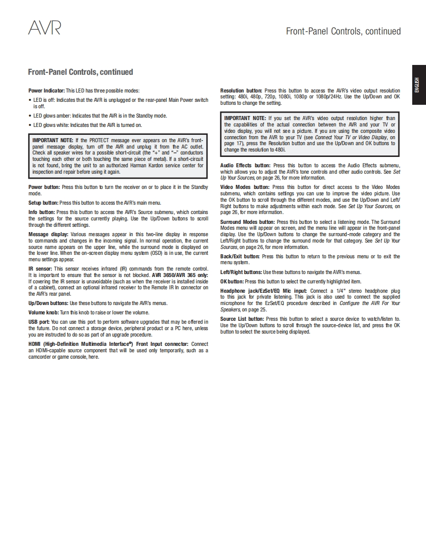 AVR265-AVR365-AVR2650-AVR3650HK使用说明书手册找手册网29天前发布关注私信4.23MB62页039AVR265-AVR365-AVR2650-AVR3650HK使用说明书手册此内容为付费资源,请付费后查看¥19¥21黄金会员免费钻石会员免费登录购买付费资源 第1页 / 共62页 第2页 / 共62页 第3页 / 共62页 第4页 / 共62页 第5页 / 共62页 第6页 / 共62页 第7页 / 共62页 第8页 / 共62页 第9页 / 共62页 第10页 / 共62页 试读已结束,还剩52页,您可下载完整版后进行离线阅读 THE END哈曼卡顿/飞利浦 文本预览 A/R3650.AVR365AVR 2650,AVR 265Audio/video receiverOwner's Manual解回Blu-rayDOLBY TrueHDtiarman/kardonharman/kardonbY HARMAN 查看更多 收起部分 喜欢就支持一下吧收藏