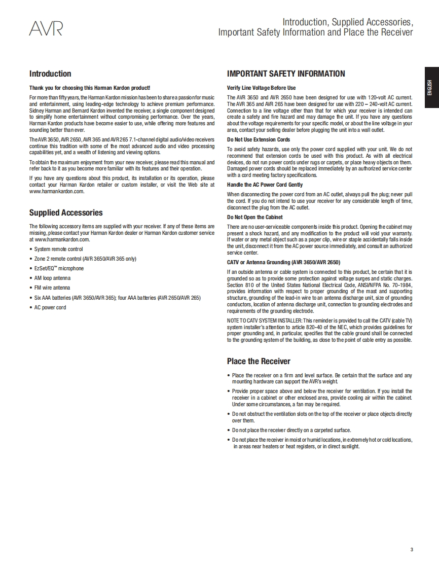 AVR2650_使用说明书手册_EN找手册网29天前发布关注私信5.12MB62页048AVR2650_使用说明书手册_EN此内容为付费资源,请付费后查看¥19¥21黄金会员免费钻石会员免费登录购买付费资源 第1页 / 共62页 第2页 / 共62页 第3页 / 共62页 第4页 / 共62页 第5页 / 共62页 第6页 / 共62页 第7页 / 共62页 第8页 / 共62页 第9页 / 共62页 第10页 / 共62页 试读已结束,还剩52页,您可下载完整版后进行离线阅读 THE END哈曼卡顿/飞利浦 文本预览 A/R3650.AVR365AVR 2650,AVR 265Audio/video receiverOwner's Manual利间Blu-rayDOLBY TrueHD2harman/kardonbY HARMAN 查看更多 收起部分 喜欢就支持一下吧收藏