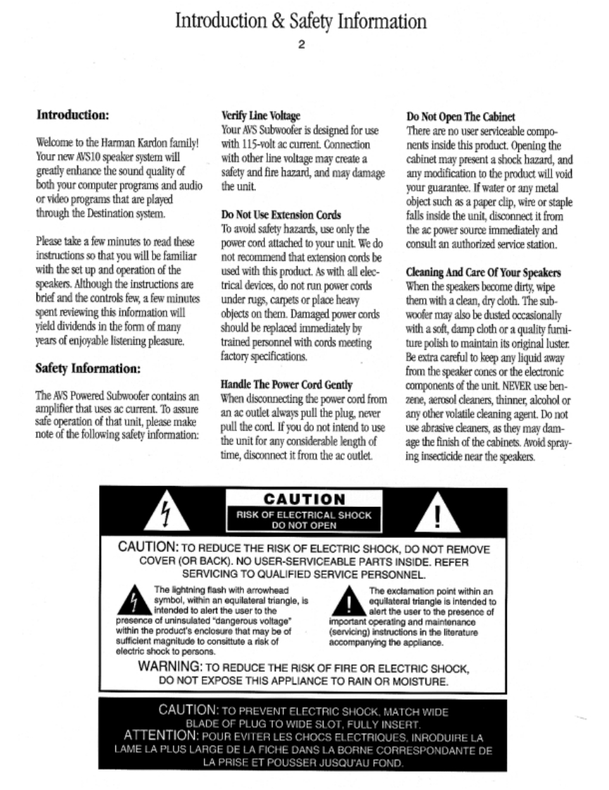 AVS10-AVAP1G-AVAP2G-AVAP5GHK使用说明书手册找手册网29天前发布关注私信1.56MB8页035AVS10-AVAP1G-AVAP2G-AVAP5GHK使用说明书手册此内容为付费资源,请付费后查看¥19¥21黄金会员免费钻石会员免费登录购买付费资源 第1页 / 共8页 第2页 / 共8页 第3页 / 共8页 第4页 / 共8页 第5页 / 共8页 第6页 / 共8页 第7页 / 共8页 第8页 / 共8页 已完成全部阅读,共8页 THE END哈曼卡顿/飞利浦 文本预览 Harman Kardon AVS10Surround Sound Speaker SystemOwner's Manualharman/kardon 查看更多 收起部分 喜欢就支持一下吧收藏