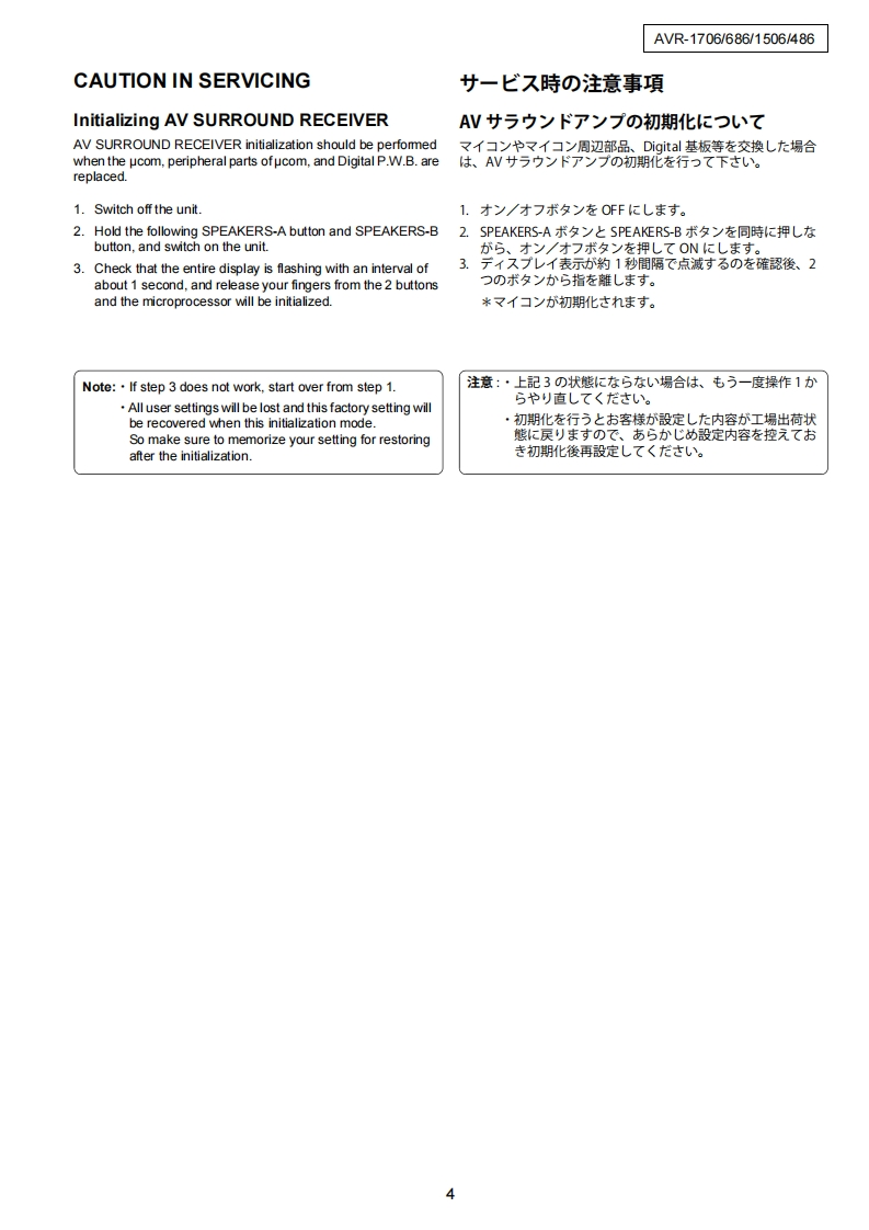DENONFor U.S.A.,Canada,Europe,Taiwan R.O.C.modelVer.1SERVICE MANUALMODEL AVR-1706/686AVR-1506/486AV SURROUND RECEIVER注意圹一七又在书乙存前忙、乙)廿一匕又又二ュ了儿必寸书蔬4〈龙志。本機志、火災、感電、付岱存艺忙对寸石安全性在保寸石左协亿、志去芒未左配虚苍方乙存(方以、未上法的估「電氨用品安全法」E屯上老、所定)許可在得(製造志九(訪)求寸。徙一乙寸一上又卷方乙存際体、乙九5)安全性雜持志九石卡、乙)少一上久マ二1了記载志九(U石注意事項卷必寸书守刂〈龙过。For purposes of improvement,specifications and●本機)仕横性能改良)左协、予告存〈变更寸石乙上design are subject to change without notice.苏齿)李寸。●補修用性能部品)保有期間法、製造打切後8年飞寸。Please use this service manual with referring to the·修理)際:、必寸取极说明害左参照)上、作業左行一operating instructions without fail.((龙达。.Some illustrations using in this service manual are●本文中忙使用L(石亻与又卜体、脱明)都合上現物slightly different from the actual set.上多少異存局場合州杨)李寸。DENONTOKYO,JAPANDenon Brand Company,D&M Holdings Inc.X0242M.01DE/CDM0507