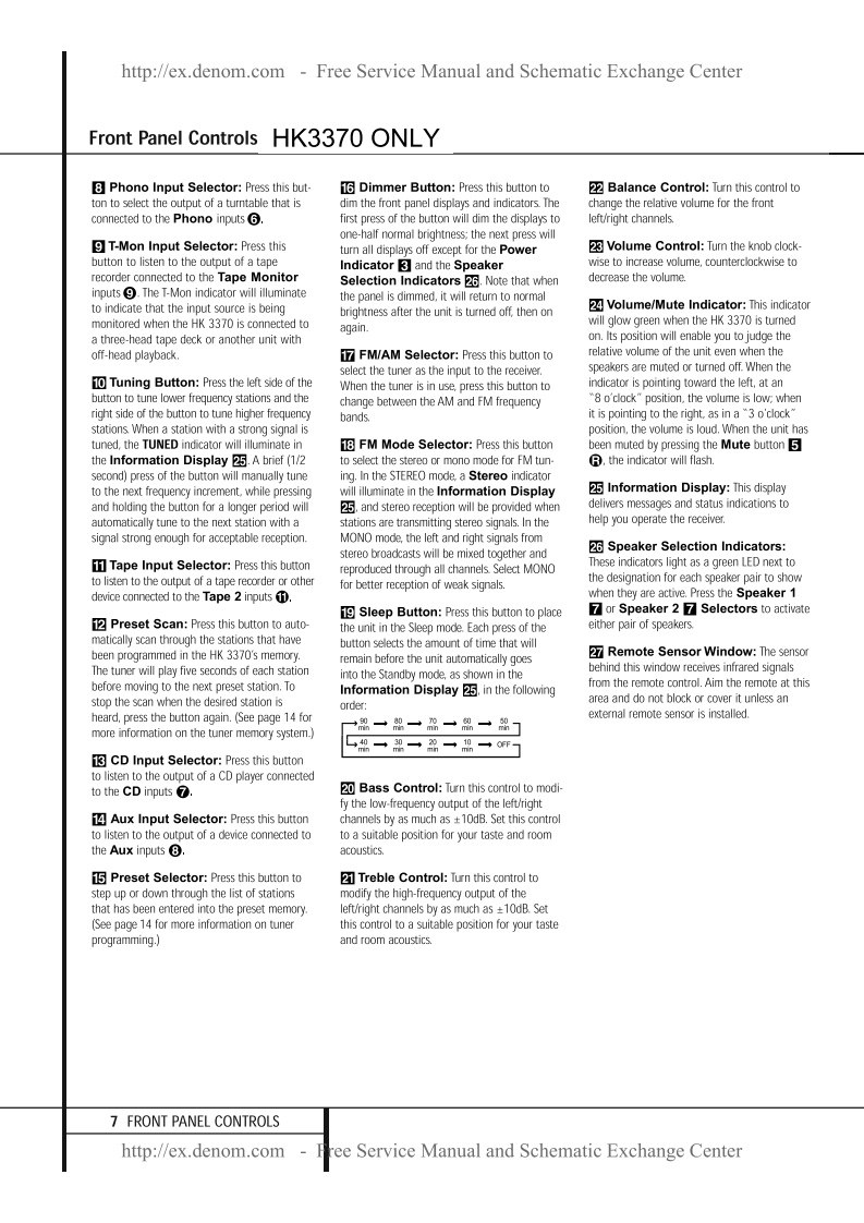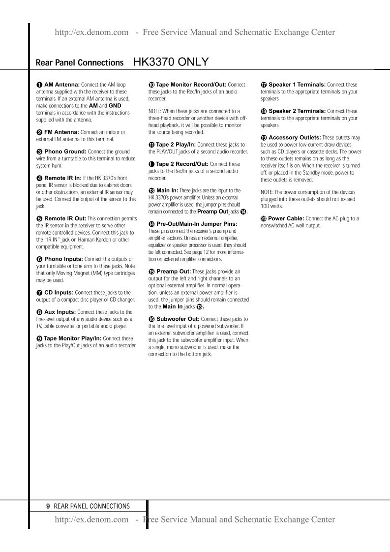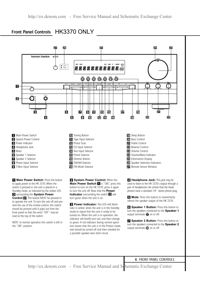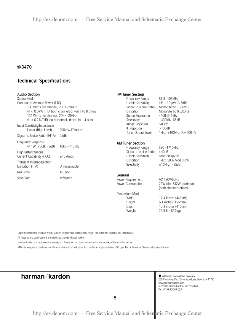 http://ex.denom.com Free Service Manual and Schematic Exchange Centerharman/kardonhk3370/3470STEREO RECEIVERPRELIMINARYSERVICE MANUALharman/kardon服服贸服登服服服服服服BO⊙⊙◎◎◎@CONTENTSESD WARNING...........2BLOCK DIAGRAM............28LEAKAGE TESTING...................3EXPLODED VIEW HK3370....................29BASIC SPECIFICATIONS hk3370.............4EXPLODED VIEW HK3470.30BASIC SPECIFICATIONS hk3470...5DISASSEMBLY PROCEDURES..31FRONT PANEL CONTROLS hk3370............6MECHANICAL PARTS LIST HK3370.......39REAR PANEL CONNECTIONS hk3370........8ELECTRICAL PARTS LIST HK3370........40REMOTE CONTROL FUNCTIONS HK3370..10MECHANICAL PARTS LIST HK3370.......57FRONT PANEL CONTROLS hk3470...........12ELECTRICAL PARTS LIST HK3370........58REAR PANEL CONNECTIONS hk3470........15Ic DESCRIPTIONS........................75REMOTE CONTROL FUNCTIONS HK3470.17PCB DRAWINGS.86TROUBLESHOOTING GUIDE...................19SCHEMATICS..............92ALIGNMENT PROCEDURES....20WIRING DIAGRAM..103WAVEFORMS...23PACKAGE.…104harman/kardon,Inc.250 Crossways Park Dr.Woodbury,New York 11797http://ex.denom.com Free Service Manual and Schematic Exchange Center